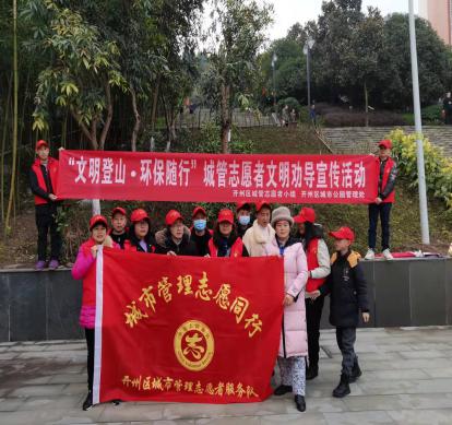 正月初九,是开州人民传统的登高节。为弘扬志愿服务精神,推进文明城市创建,让全区市民朋友度过一个快乐的节日,2月9日上午城市管理志愿者携手城市公园管理处在南岭公园开展“文明登山,环保随行”城管志愿文明劝导宣传活动。
