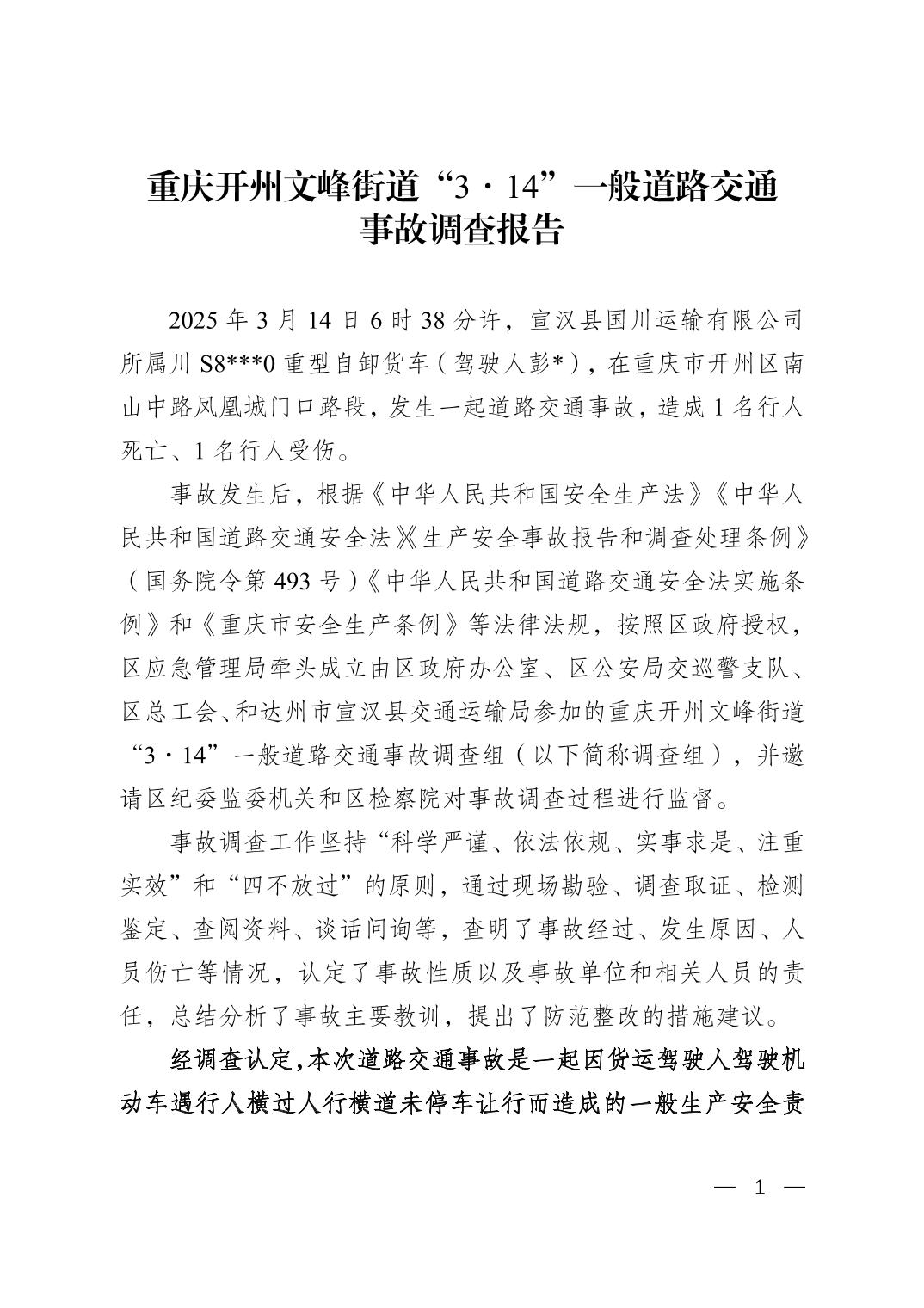 重庆开州文峰街道“3.14”一般道路交通事故调查报告