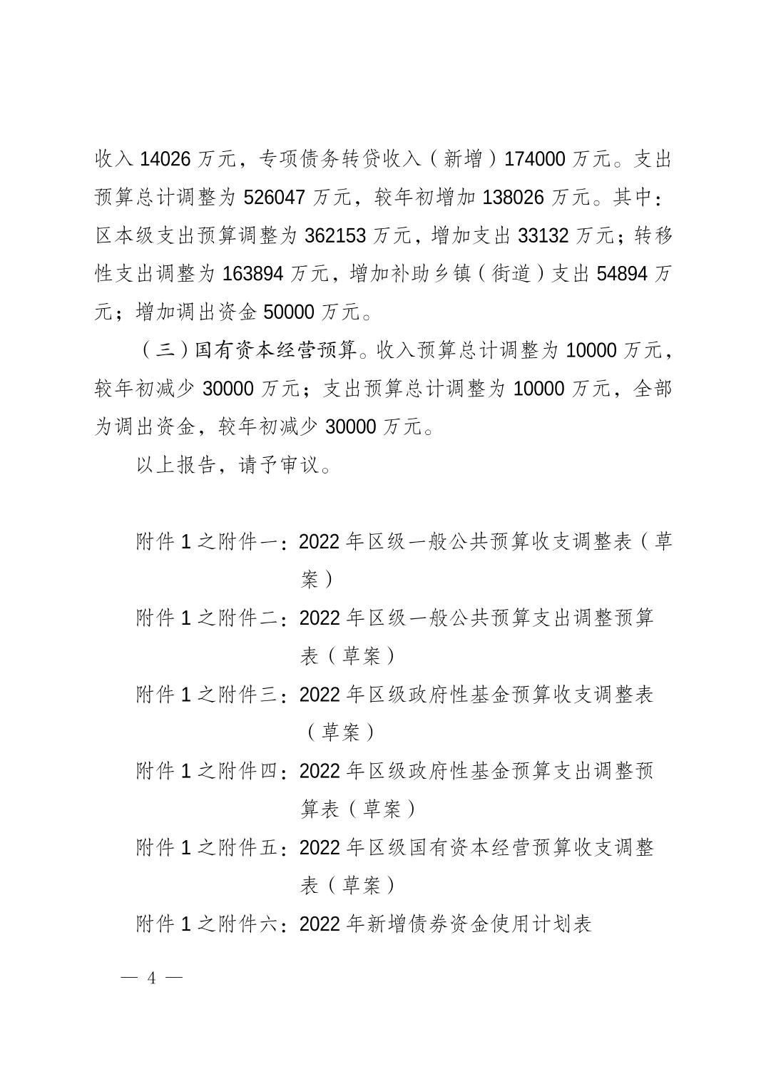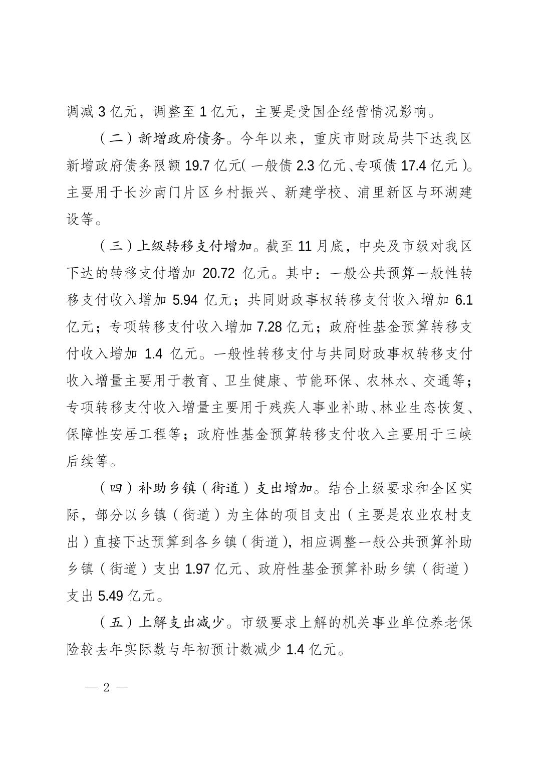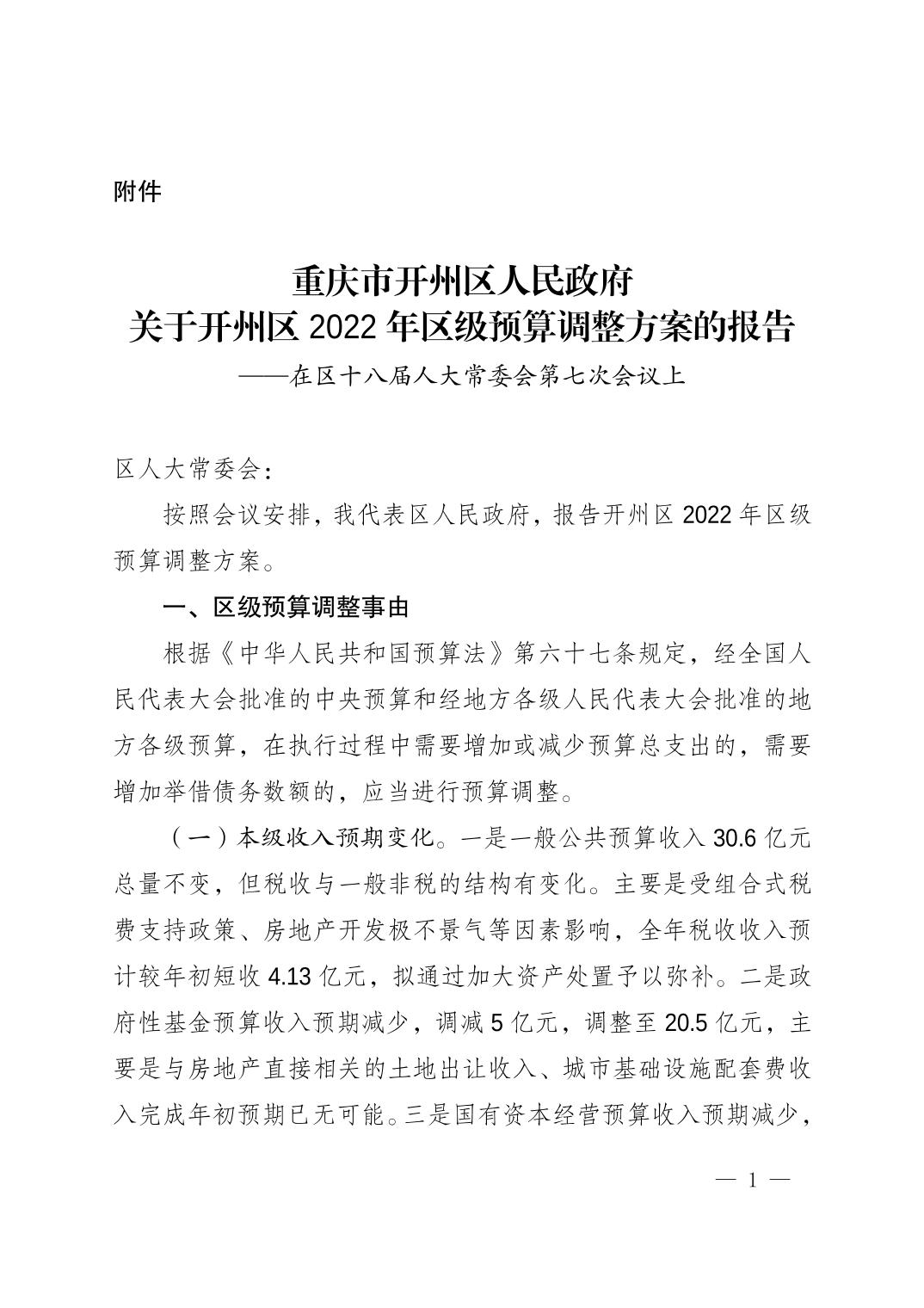 重庆市开州区人民政府关于开州区2022年区级预算调整方案的报告