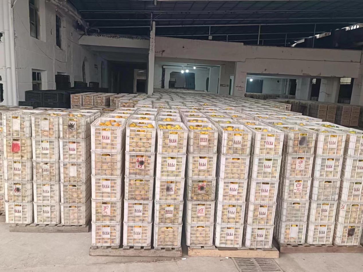长沙镇大桥洗果场已清洗的果实准备上车外运