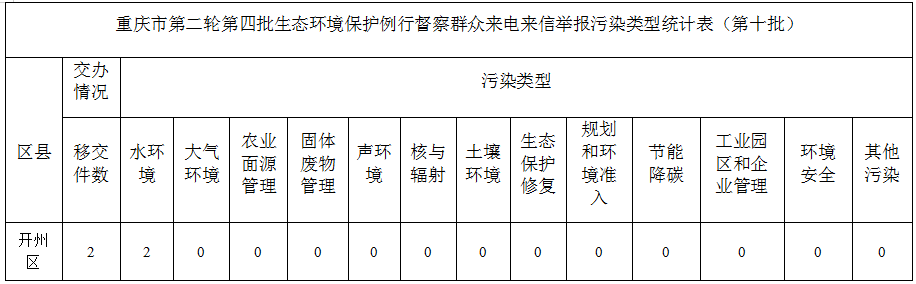 重庆市第三生态环境保护督察组向开州区交办第十批群众信访举报件2件