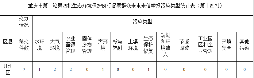 重庆市第三生态环境保护督察组向开州区交办第十四批群众信访举报件7件