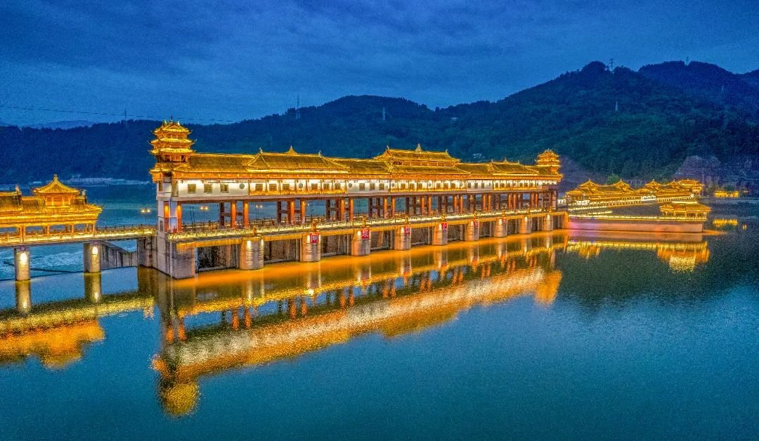 处处洋溢着明清建筑的古韵,荟萃开州千年文明。远远的眺望风雨廊桥,在保持实用性的同时极具美感。