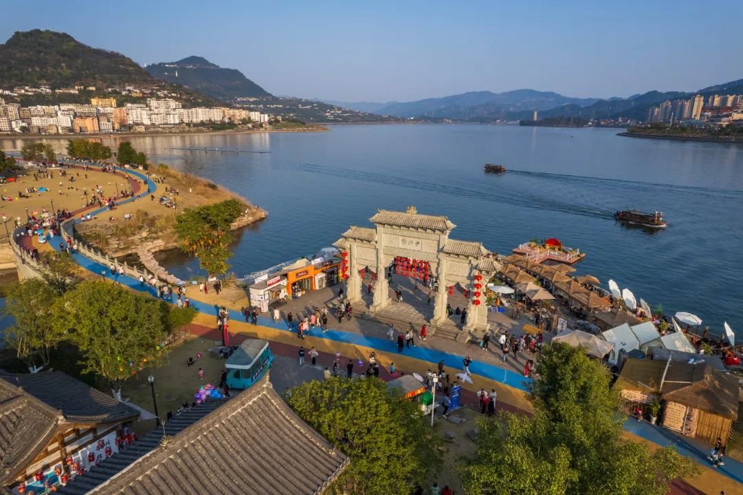 开州故城因三峡工程而复建,与沉睡在汉丰湖底的开州千年母城血脉一体,这里有琳琅满目的农特产品,丰富多样的餐饮小吃,可以感受人间烟火最蓬勃之处。