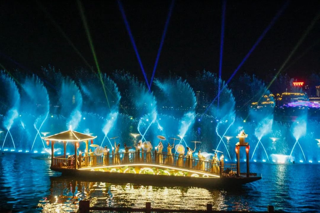 在汉丰印秀中发掘开州历史,身披五彩的水幕,在乐舞中动感无限,不同的灯光、水秀、激光,搭载契合了开州的气质,在这个我满载千年文化的古城,入夜的生活同样魅力四射。
