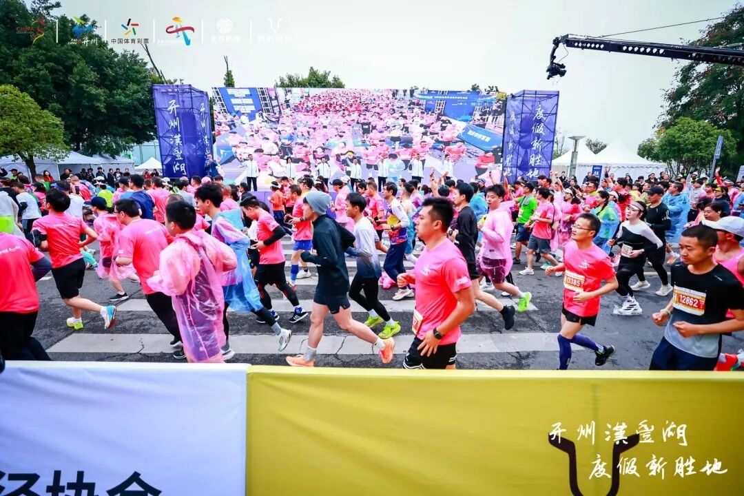 “3、2、1!”上午8点发令枪响,4000名参赛选手在汉丰湖畔准时起跑。
