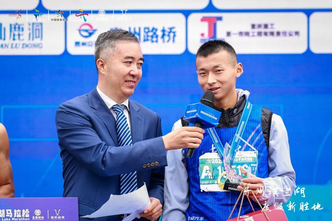 赛后采访时,马拉松男子组别冠军龚灿表示,汉丰湖赛道风景优秀,赛道风光独特,能够获得冠军,非常荣幸!
