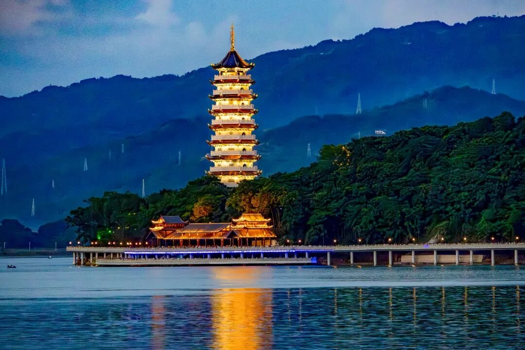 风雨廊桥是连接湖畔景点的绝佳去处。这座五百多米长的仿古长亭,横跨湖面,桥上精雕细刻的照壁、牌楼、石坊充满明清建筑的风韵。