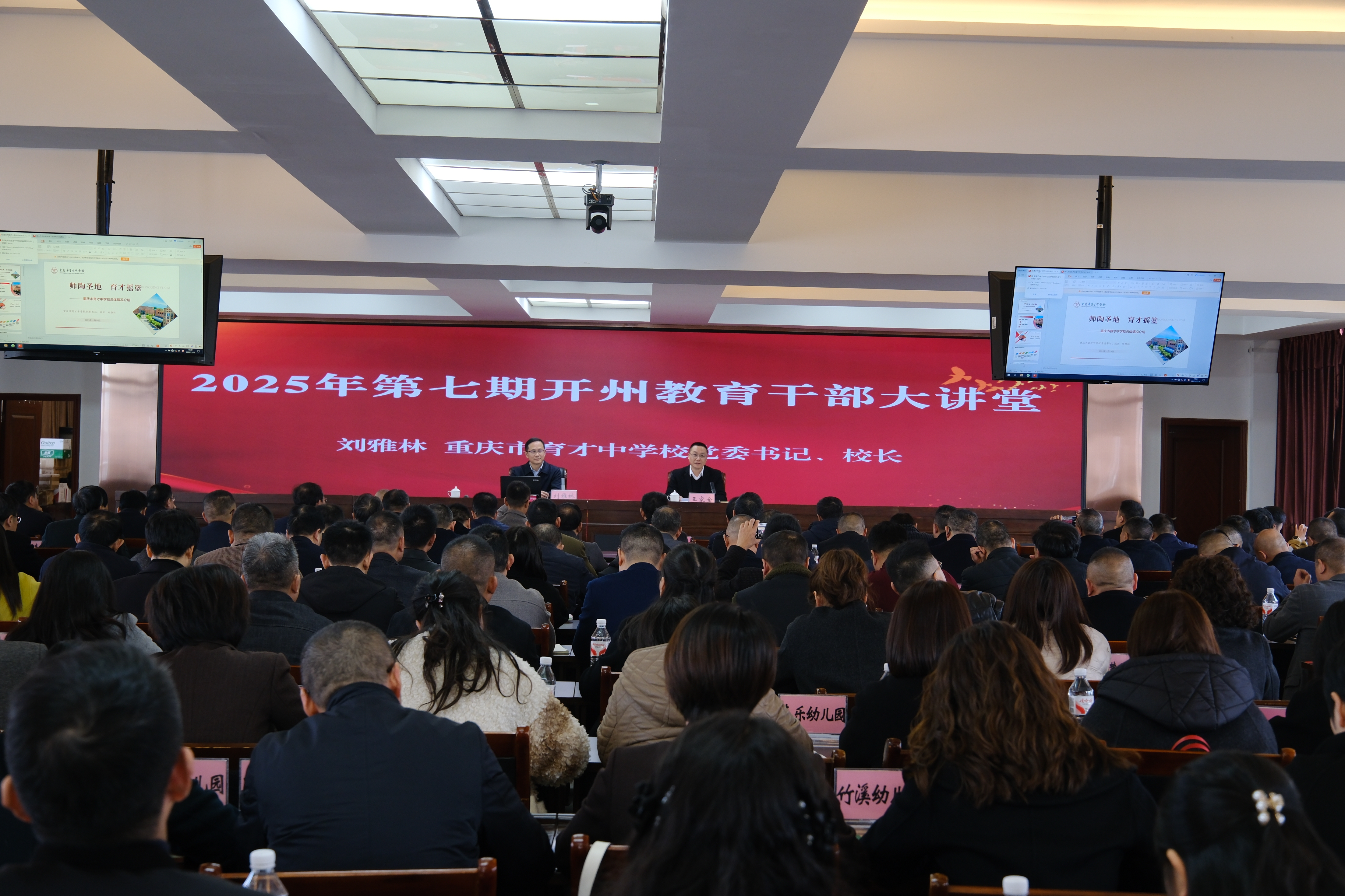 11月19日,重庆市育才中学校党委书记、校长刘雅林一行来开考察交流,并在第七期开州教育干部大讲堂上作专题辅导报告。重庆树人教育研究院院长王雁玲,重庆市育才中学校党委委员、副校长熊庆林,区委教育工委、区教委在家班子成员参加。