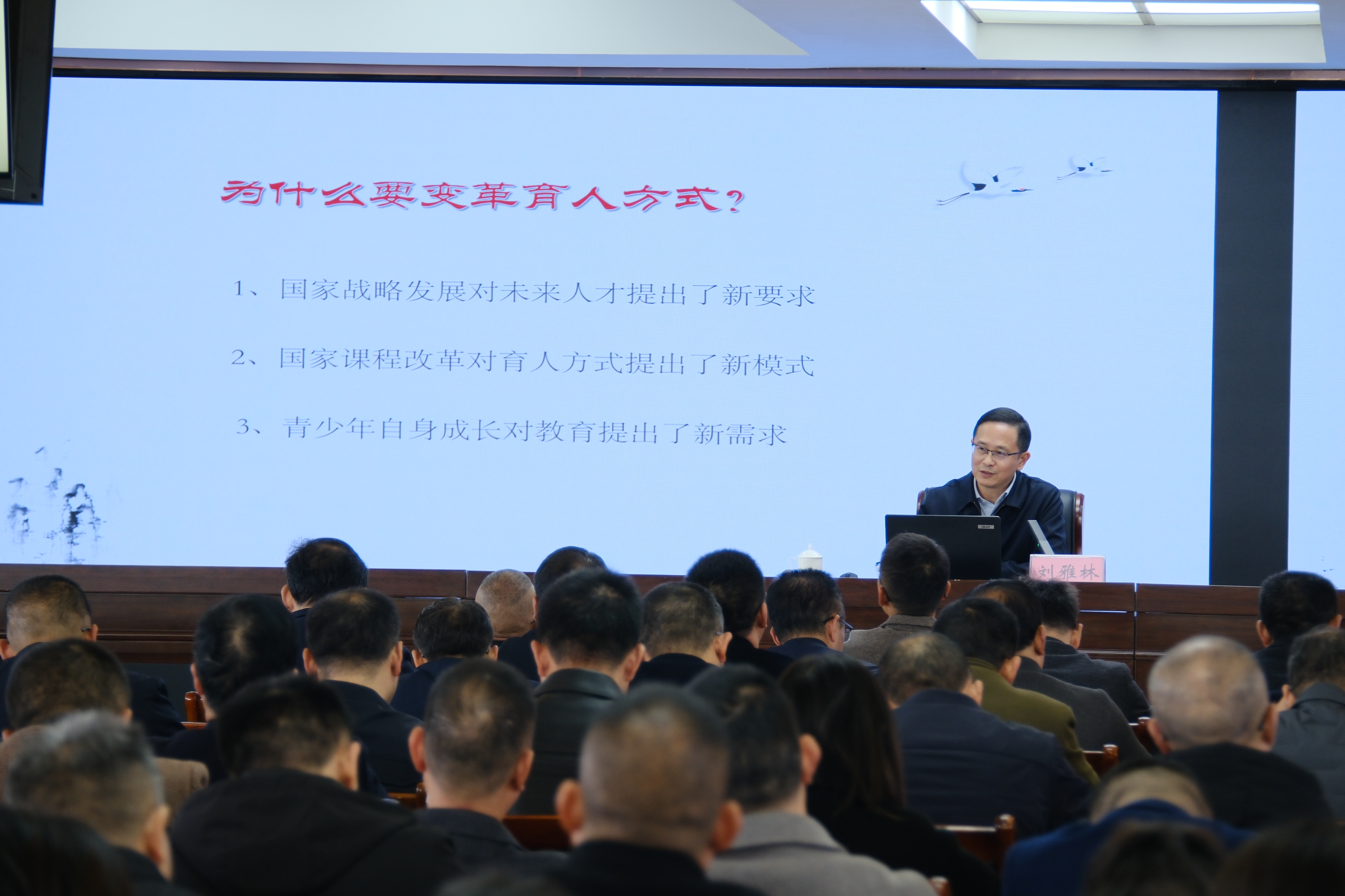 刘雅林指出,要准确把握国家战略发展对未来人才的新要求、落实国家课程改革的新模式、顺应青少年自身成长的新需求,以课程思想、课程目标、课程内容、课程实施、课程评价的现代化为抓手,推动育人方式变革。刘雅林强调,要深刻认识“育人方式变革”与“学校文化建设”之间的内在逻辑,重新审视和规划我们各自学校的文化建设工作,重点关注办学理念、特色办学、内涵追求、教学质量、育人环境等十个领域,为推动开州区教育内涵式、高质量发展贡献力量,共同谱写立德树人的新篇章。