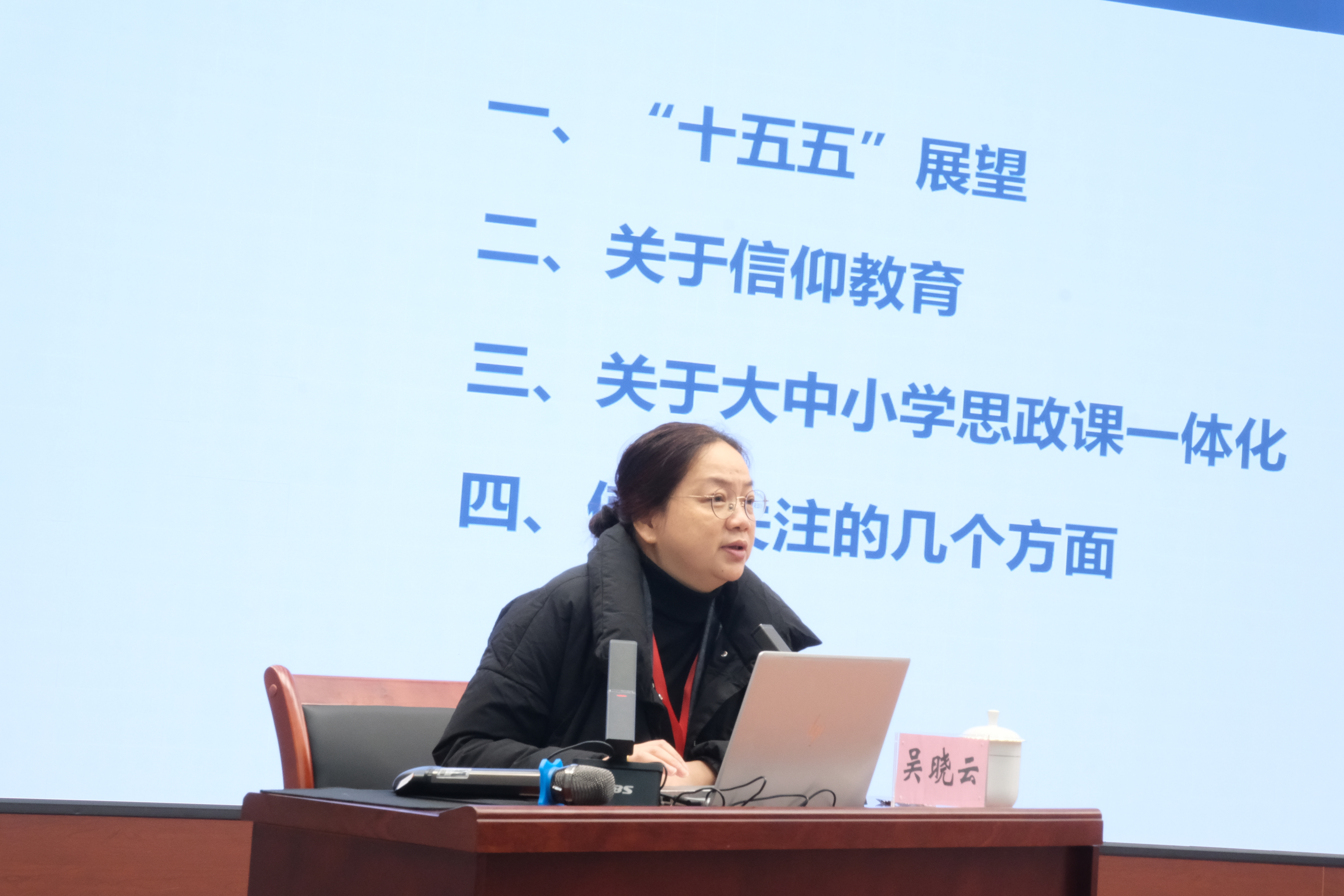 本次会议以“抓实信仰教育,深化红岩思政”为主题,旨在贯彻落实党的二十大和二十届四中全会关于“构建固本铸魂的思想政治教育体系”“促进思政课堂与社会课堂有效融合”重大决策部署。会上解读了《重庆市开州区“信仰教育”思政工作一体化建设方案》,发布了红色研学精品路线、《开州区“信仰教育”课程教学指导意见》与《提升中小学课堂文化思政引领力倡议书》,通报了开州区“信仰教育”思政一体化建设基地校名单,中小学思想政治教育一体化建设学校联盟代表分别作交流发言。并开展了“信仰教育”主题课例展示,为相关课程改革学术成果颁奖。此外,北京师范大学哲学学院研究员、博士生导师吴晓云围绕“充分彰显文化育人的思政引领力”主题进行专题讲座,杨昌义理事长以“信仰教育的实践逻辑与课程化实施”为主题举办专题培训。
