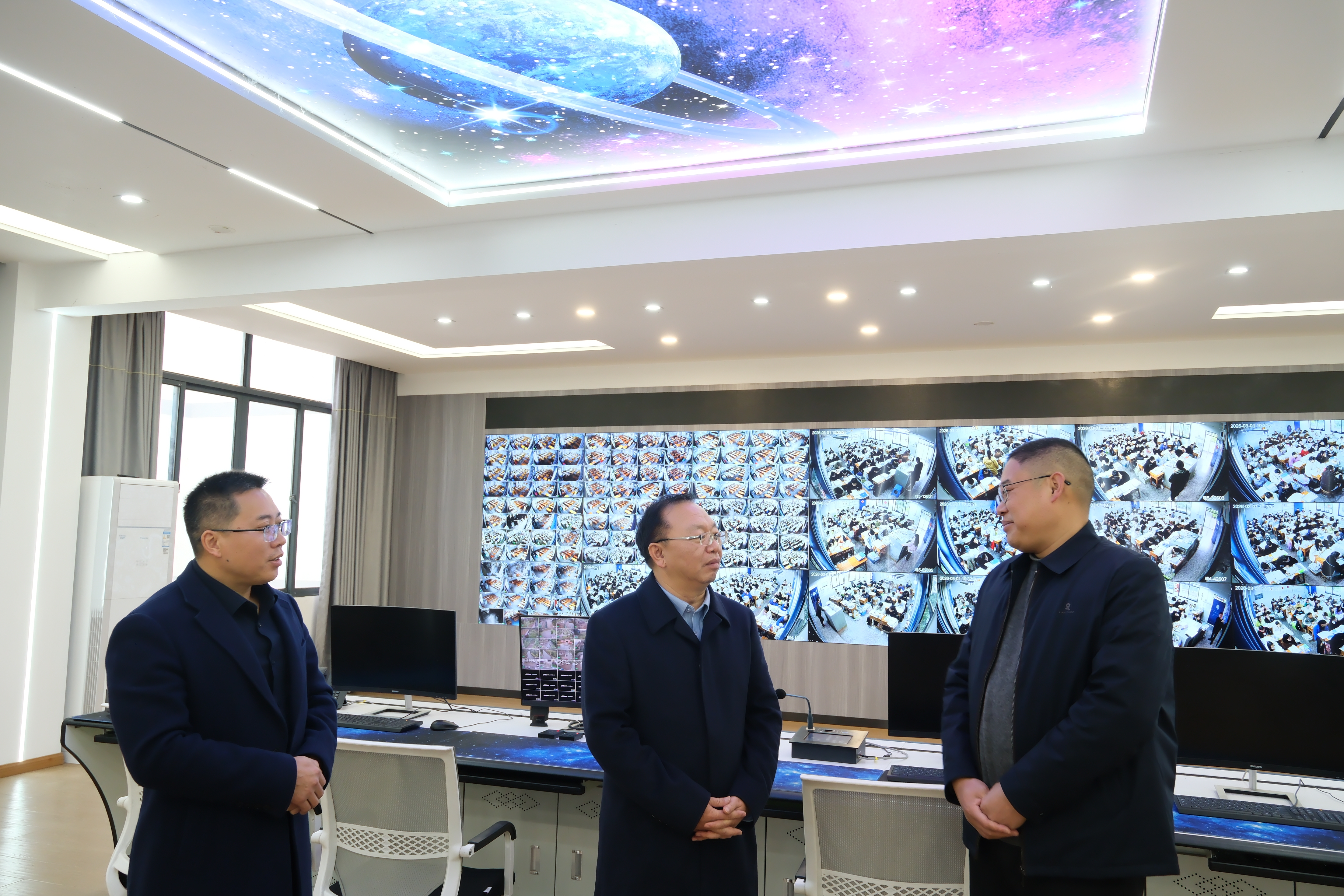 李晓海一行深入学校,实地查看办公室、实验室、主控室、教室、操场、师生食堂等场地场所,并听取了学校负责人关于开学安全工作和高考备考工作的汇报。