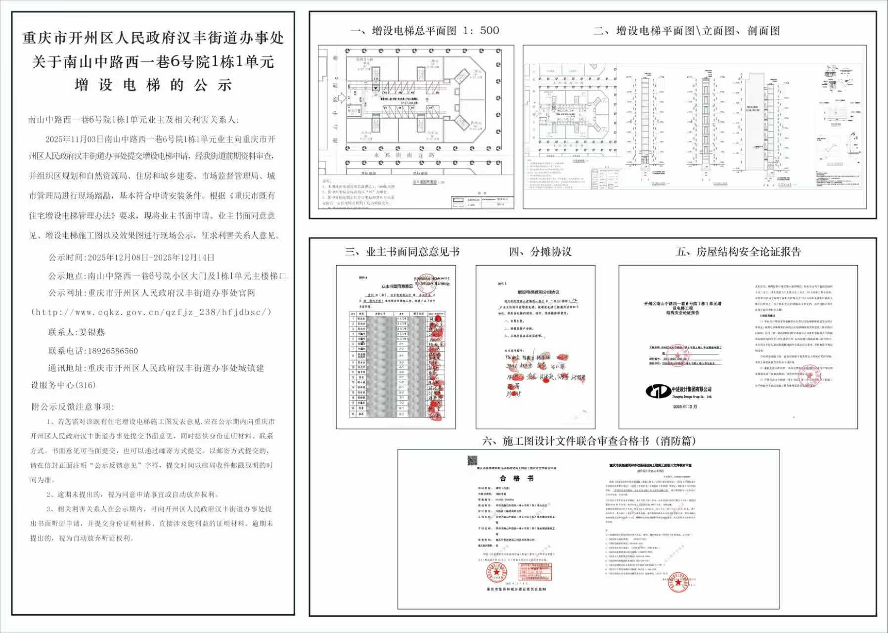 关于南山中路西一巷6号院1栋1单元增设电梯的公示