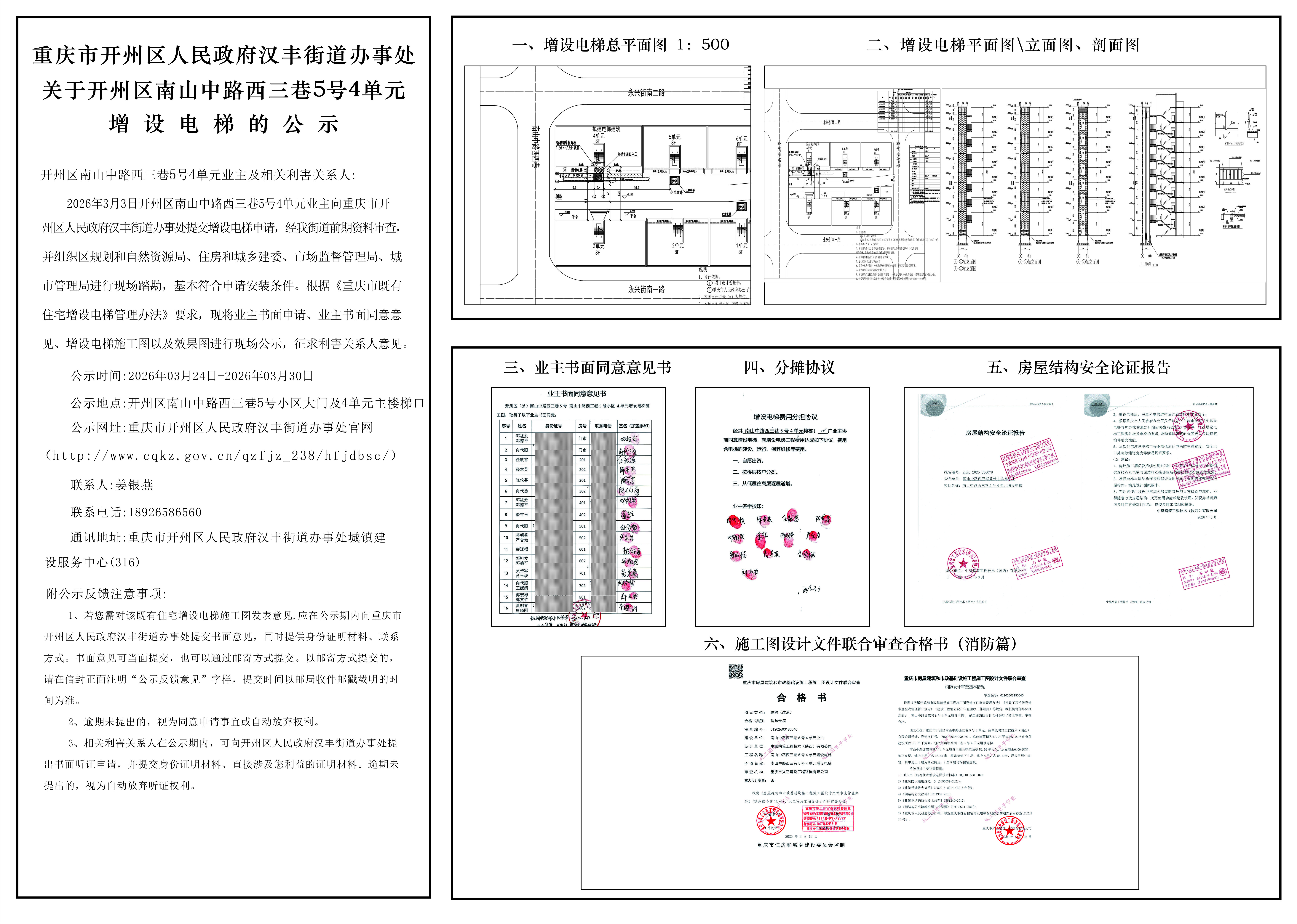 关于开州区南山中路西三巷5号4单元增设电梯的公示