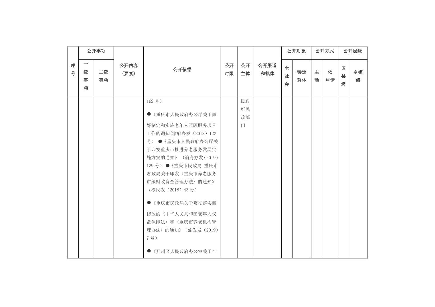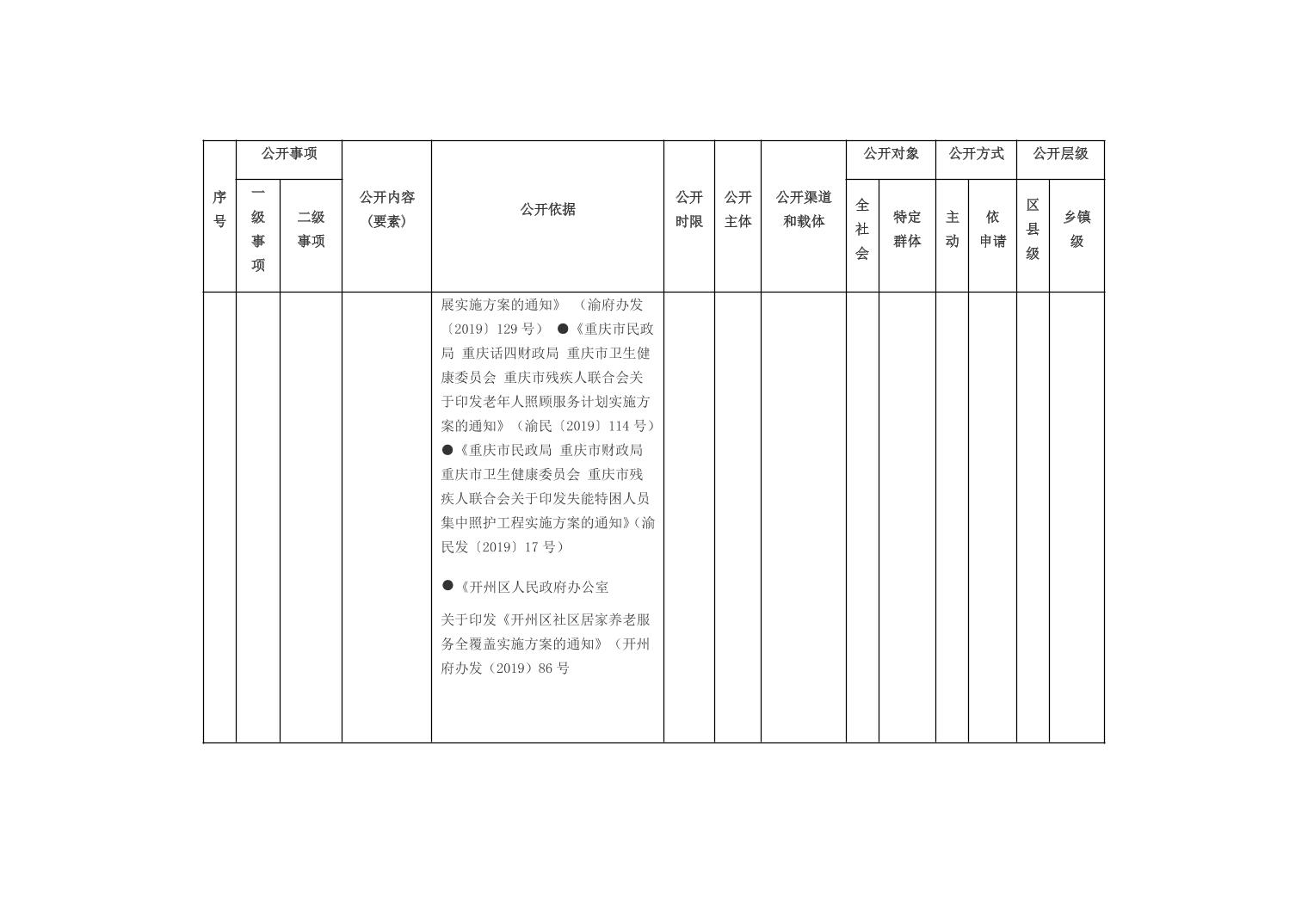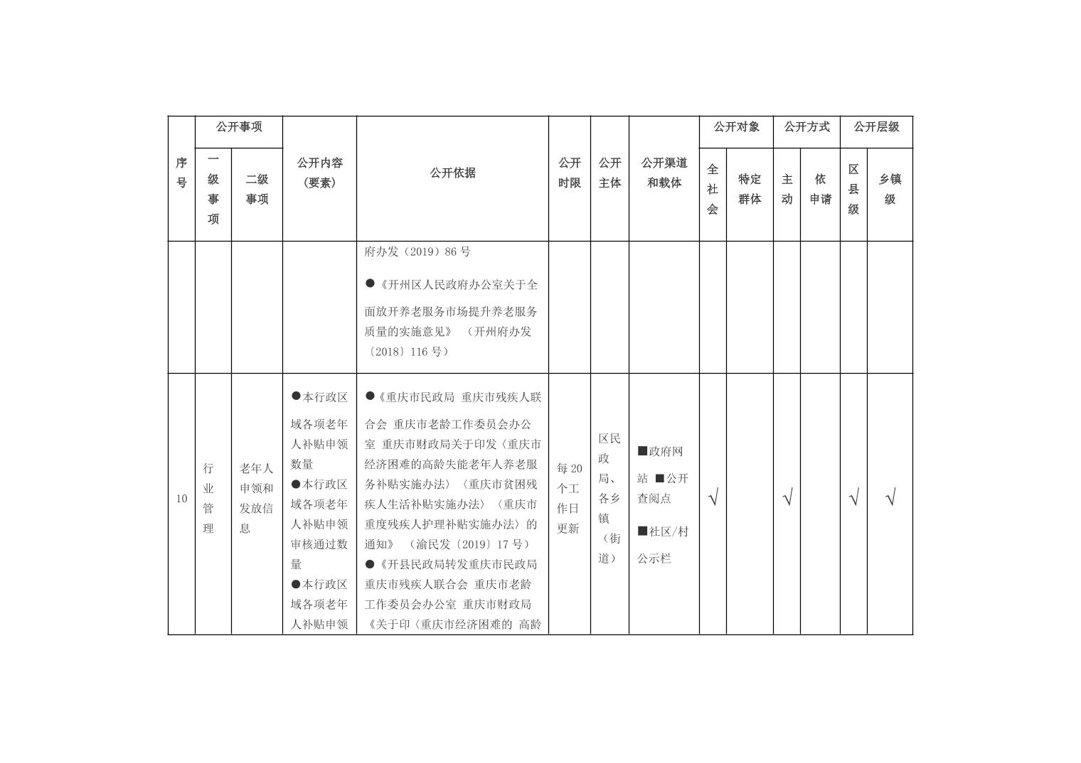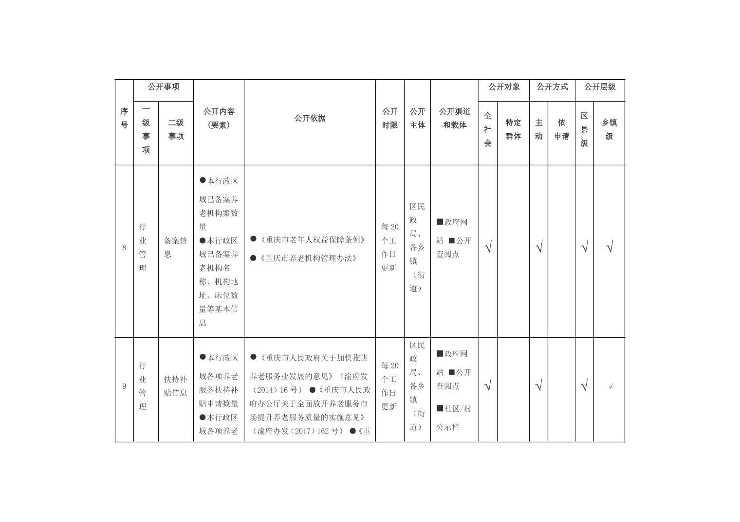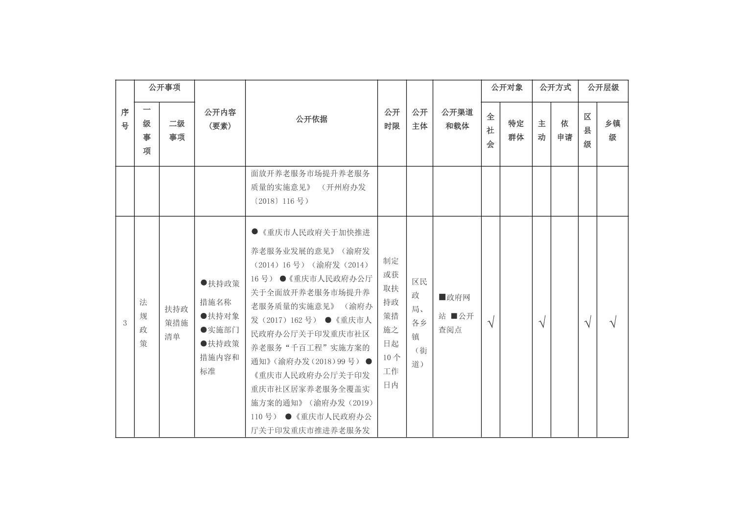 重庆市开州区乡镇街道养老服务领域基层政务公开标准目录(2026年版)