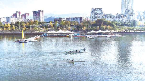 辽宁赛艇南下砺兵 汉丰湖上逐浪冬训