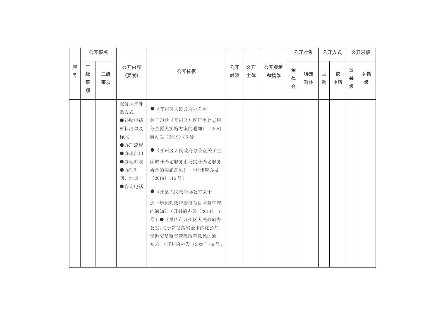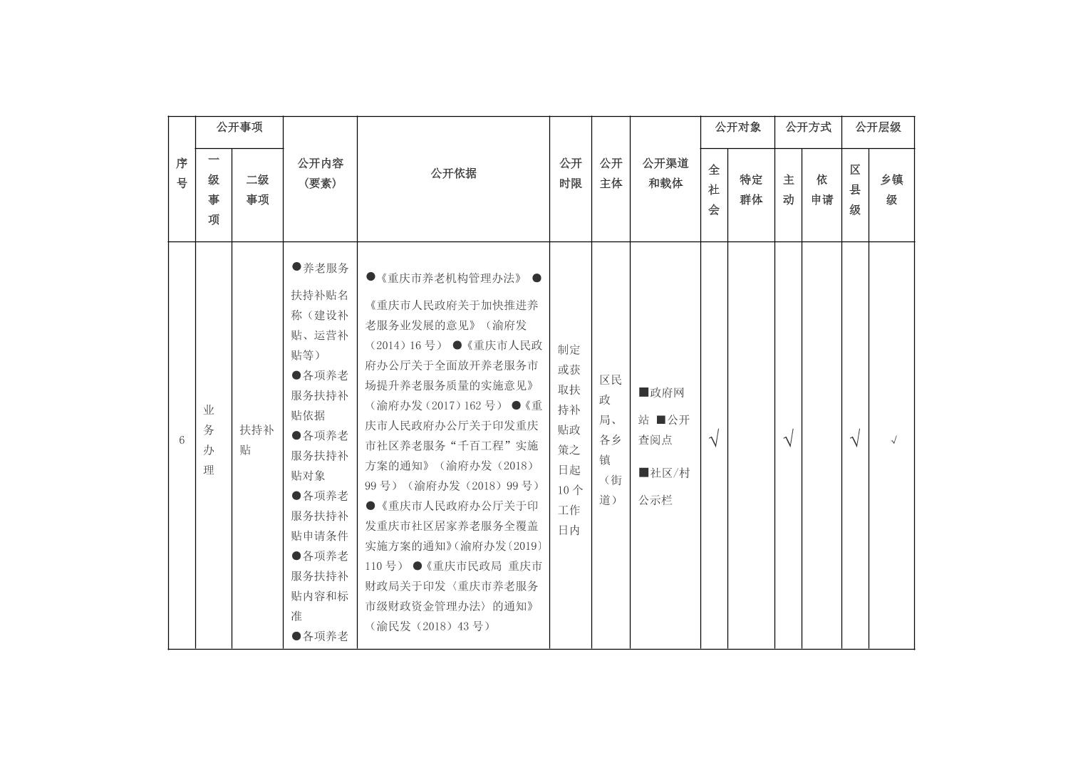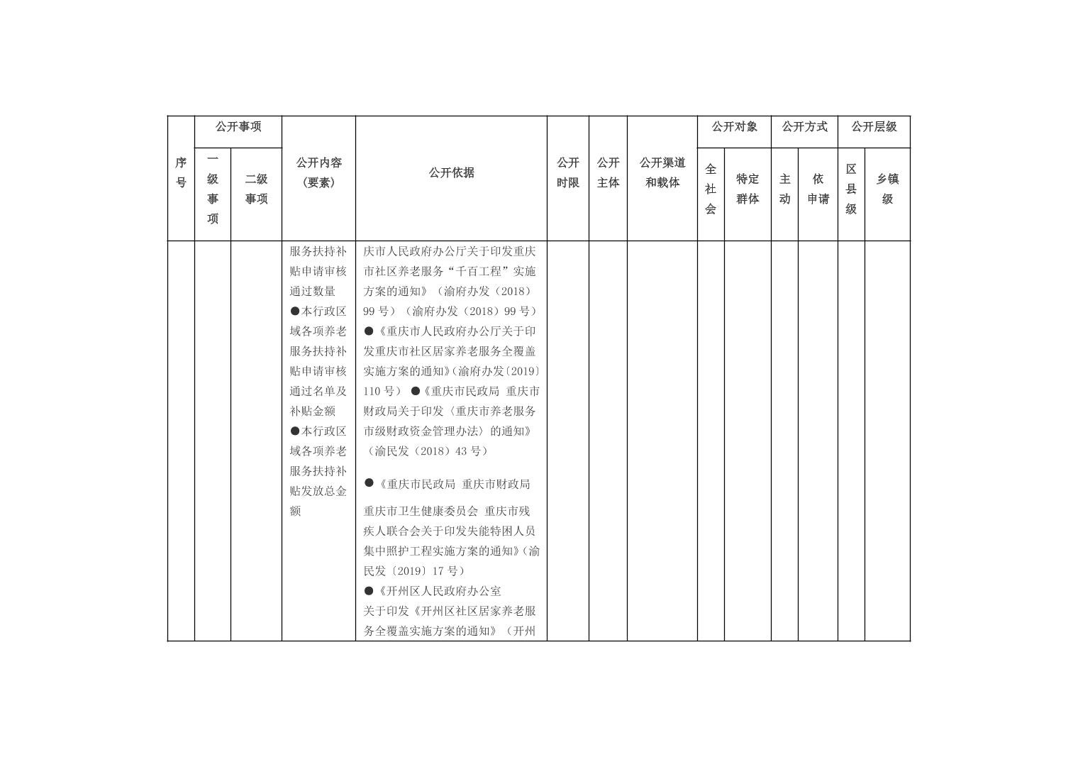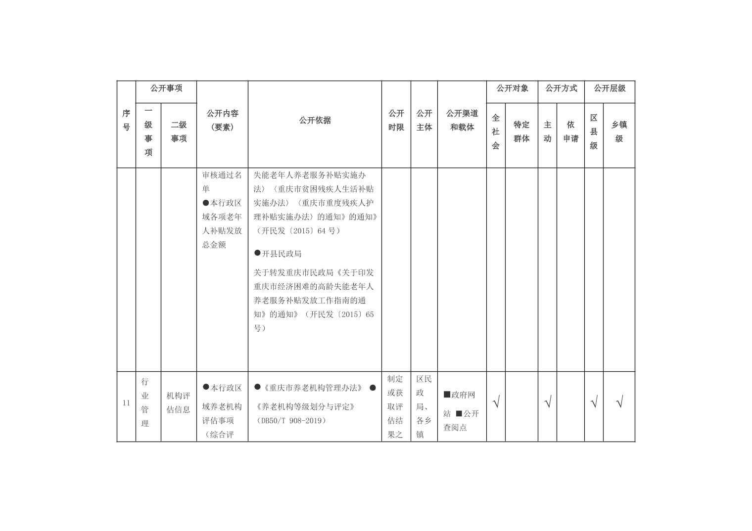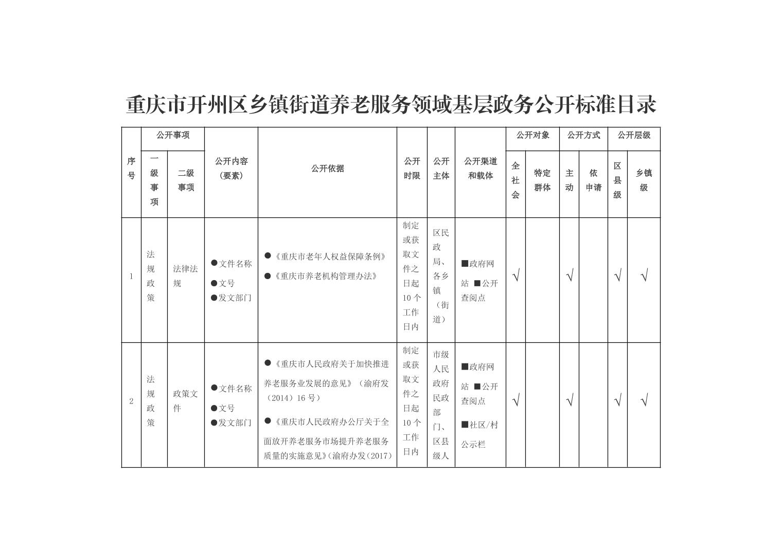 重庆市开州区乡镇街道养老服务领域基层政务公开标准目录(2026年版)