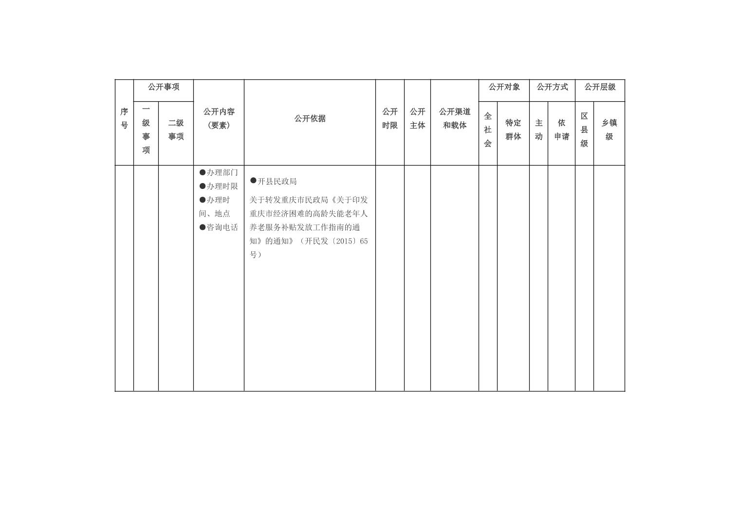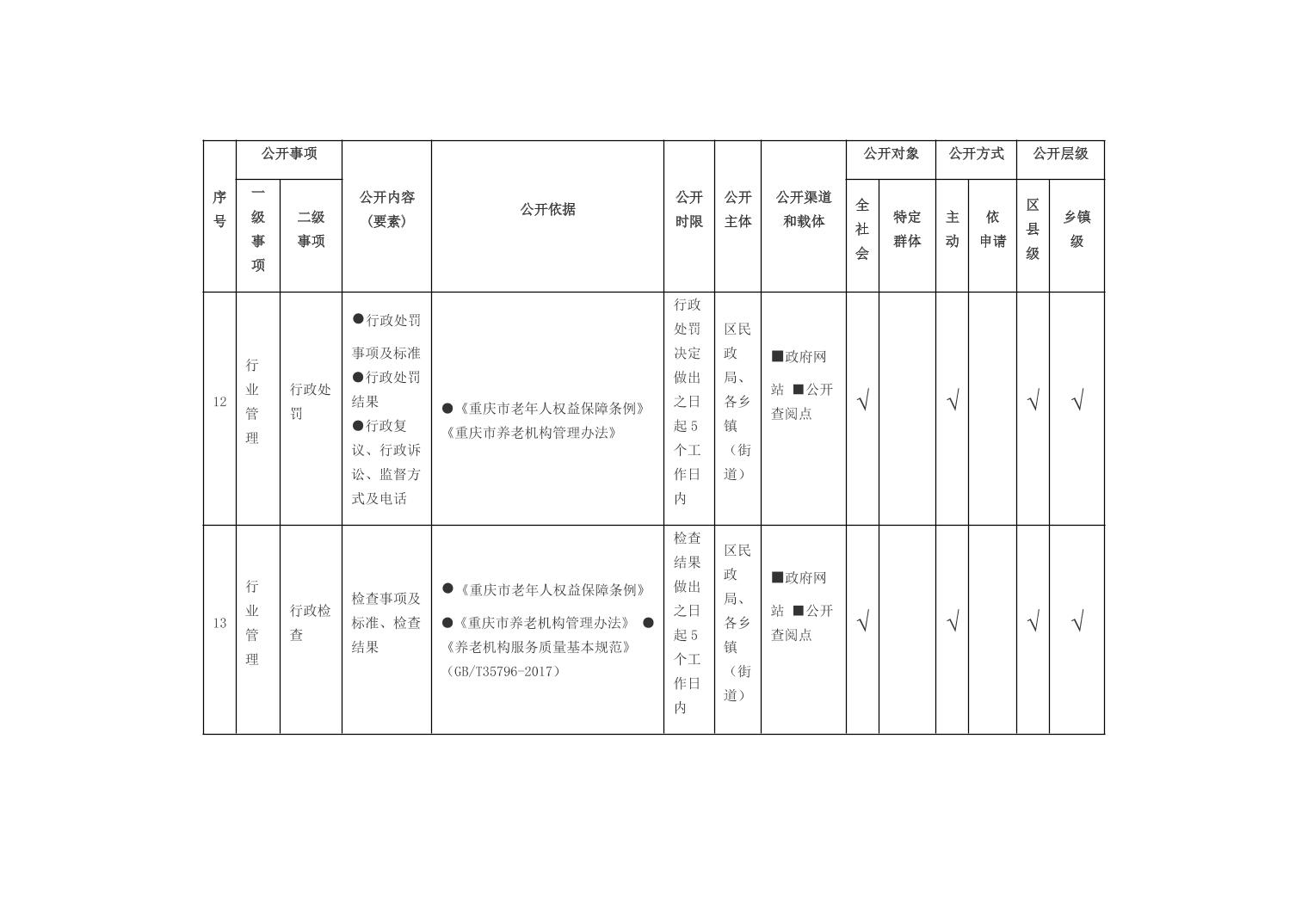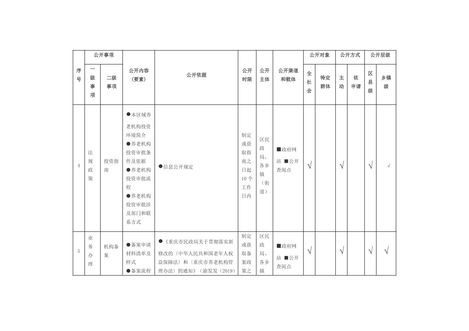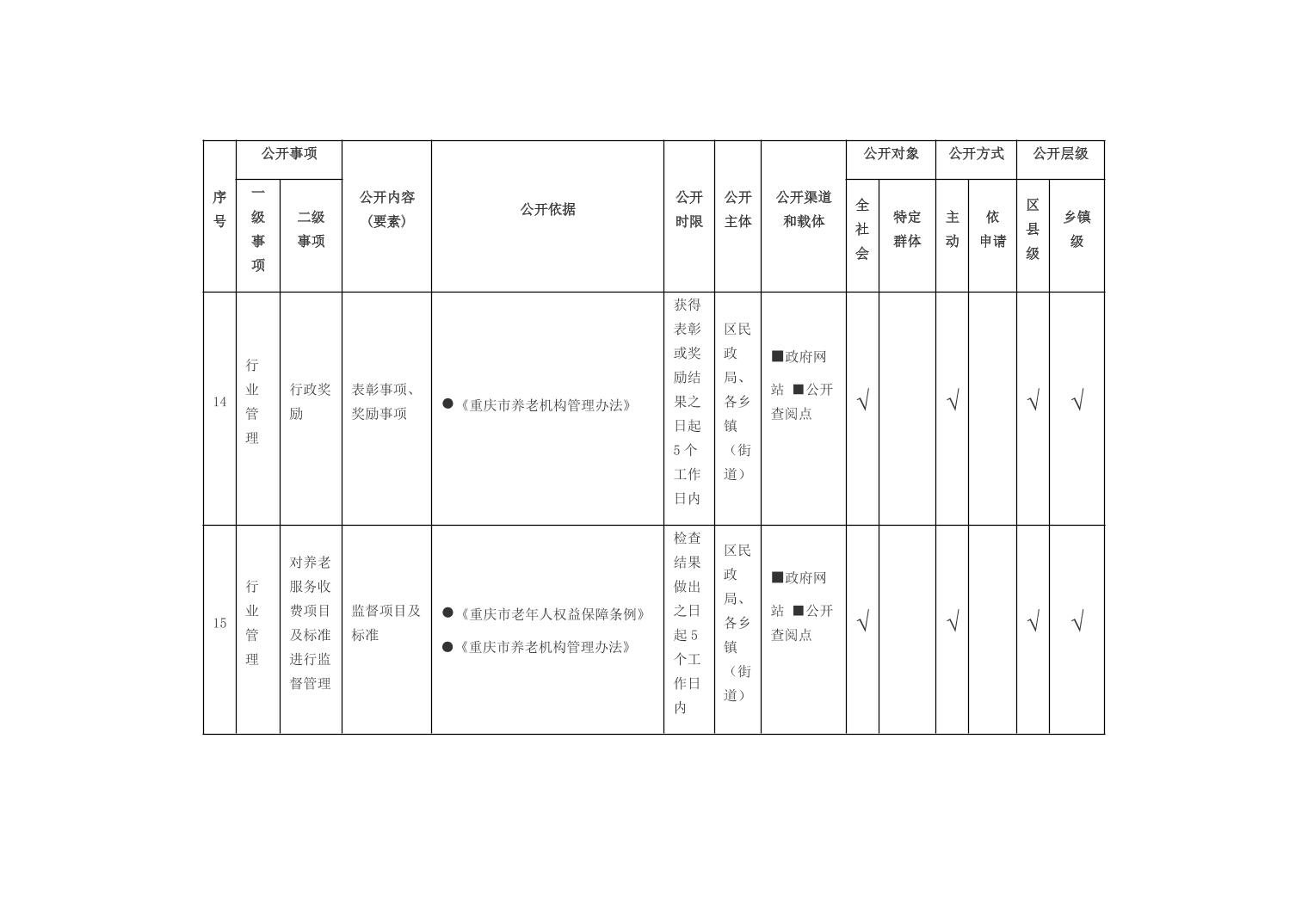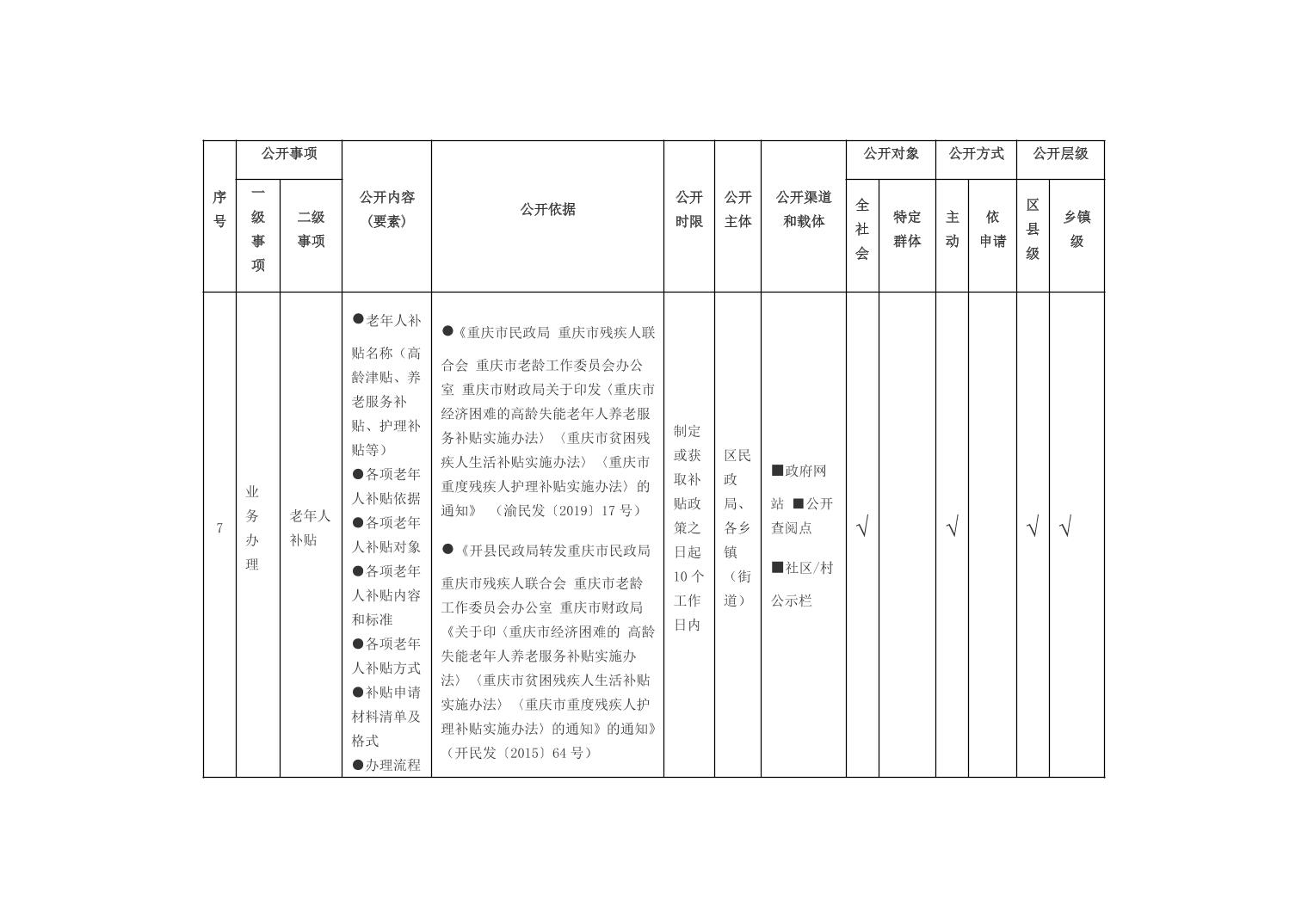 重庆市开州区乡镇街道养老服务领域基层政务公开标准目录(2026年版)