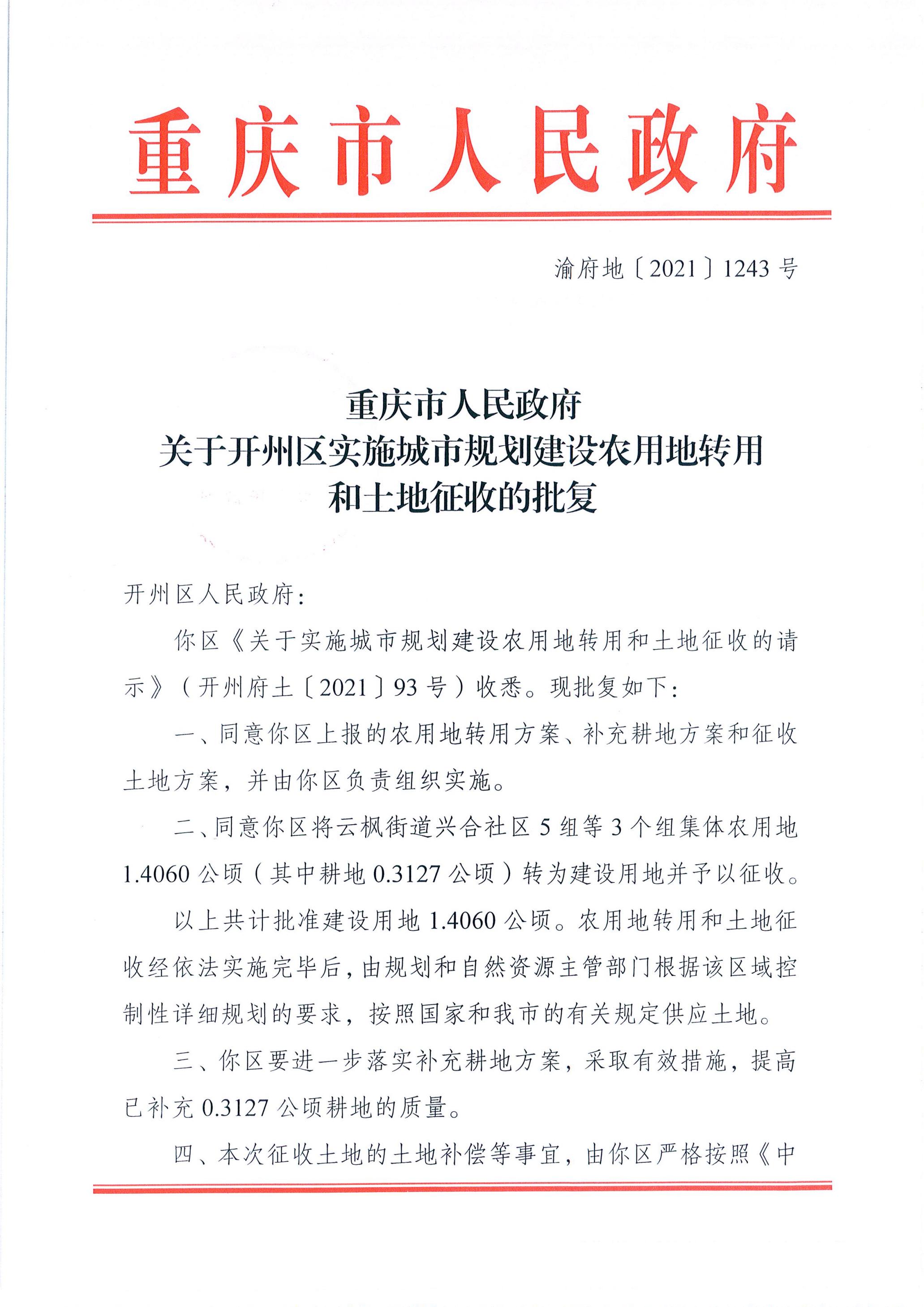 重庆市开州区人民政府关于征收土地的公告(开州府征地公告〔2022〕3号)