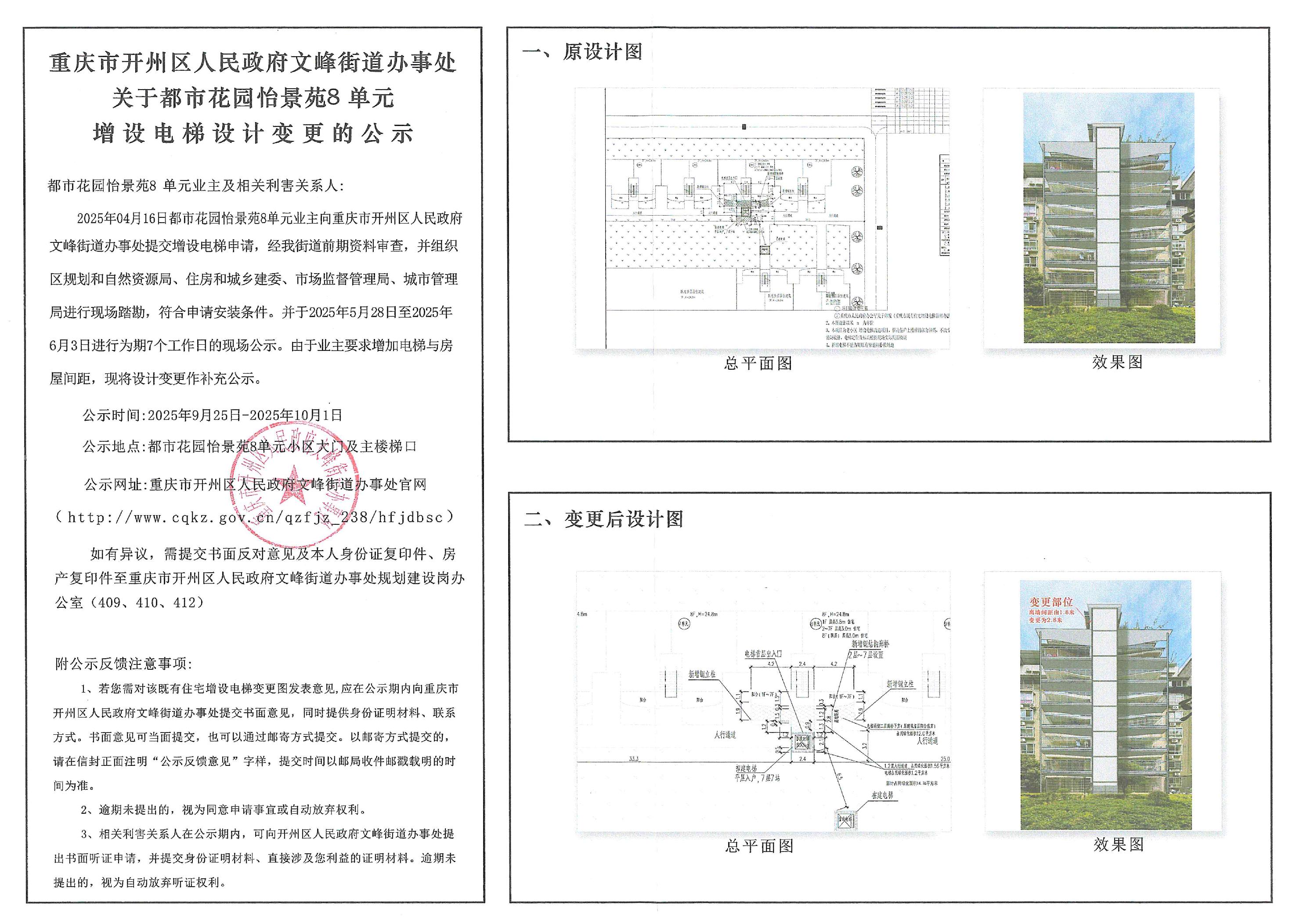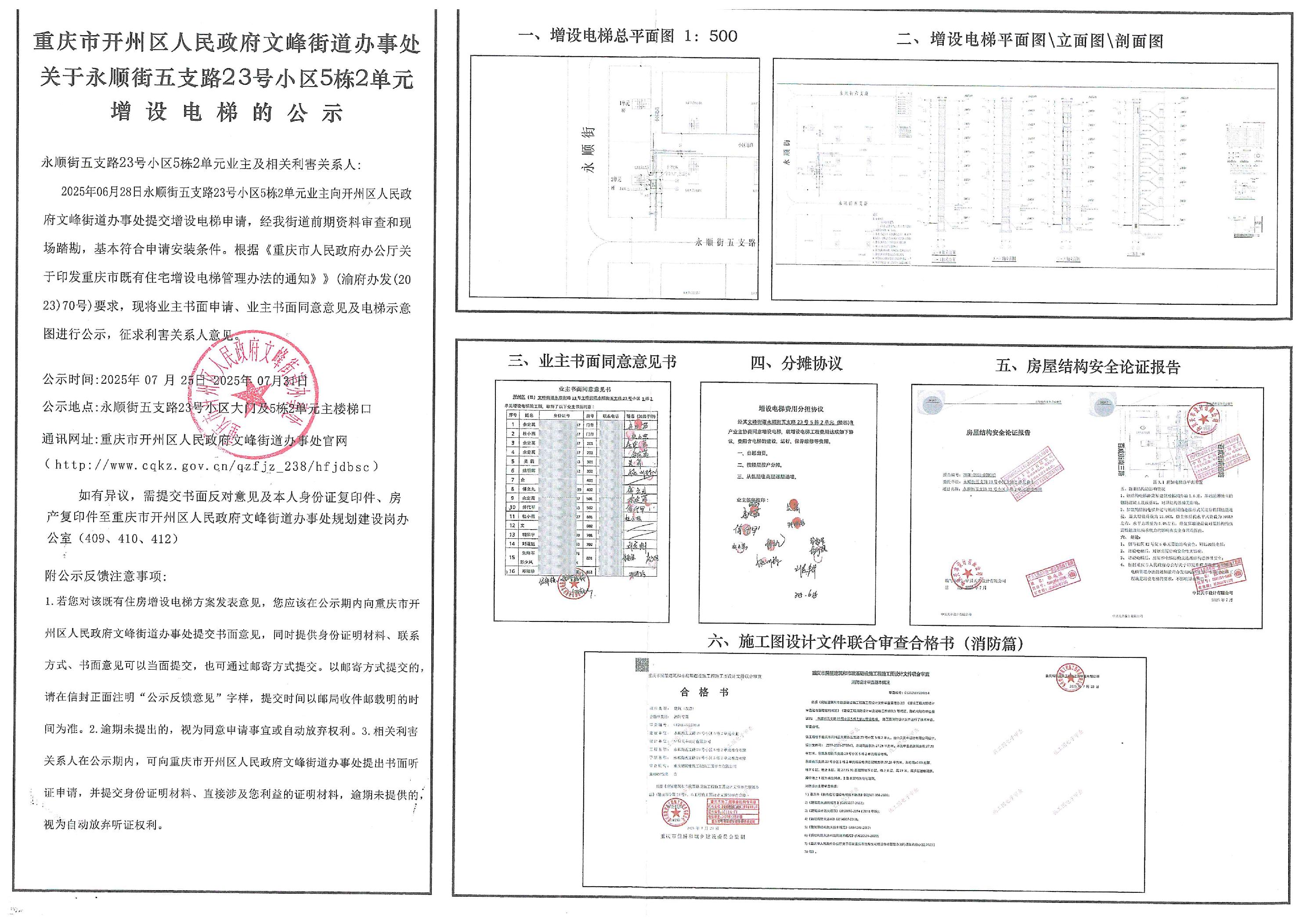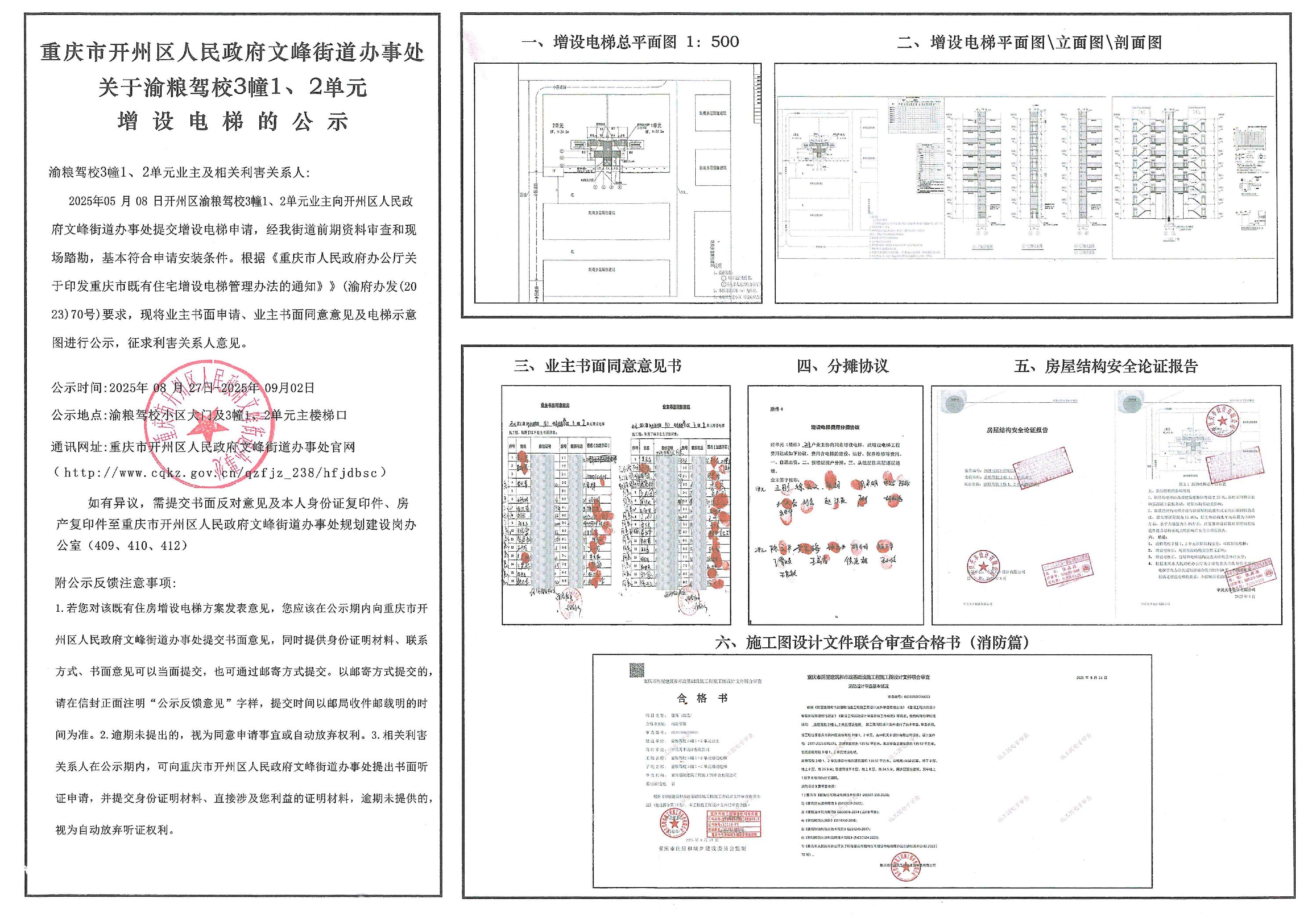 重庆市开州区人民政府文峰街道办事处关于2025年第三季度增设电梯的公示