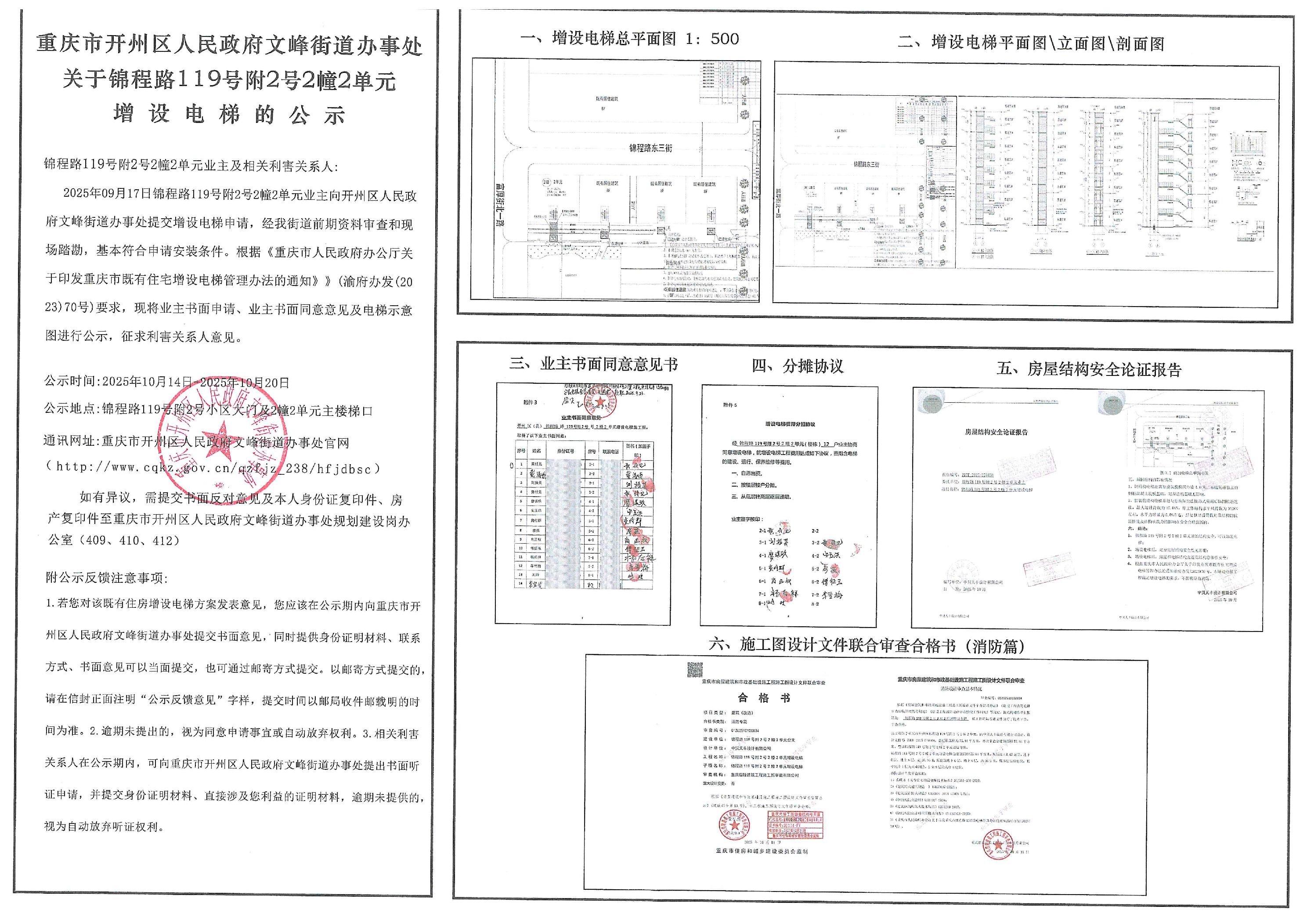 重庆市开州区人民政府文峰街道办事处关于2025年第四季度增设电梯的公示