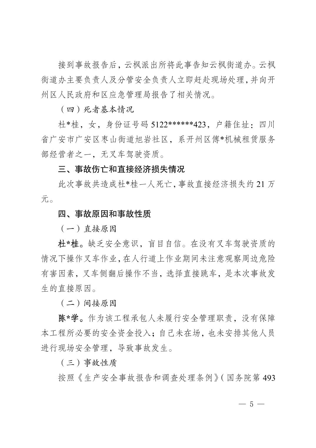 重庆开州云枫街道“8·27”一般叉车 车辆伤害事故调查报告