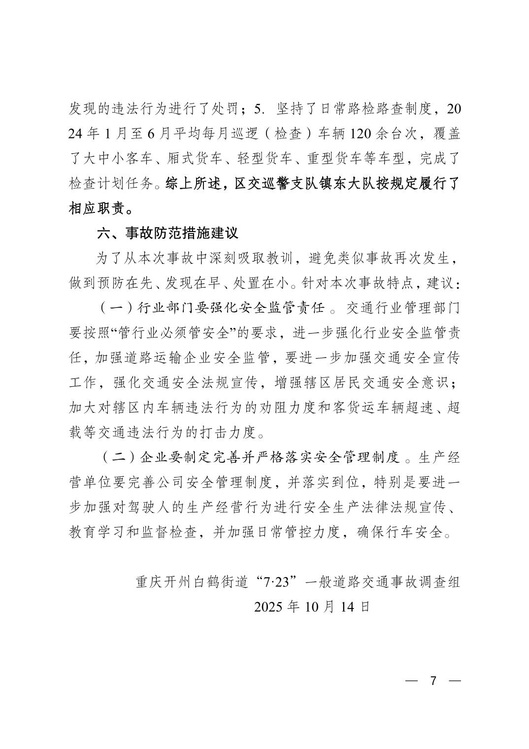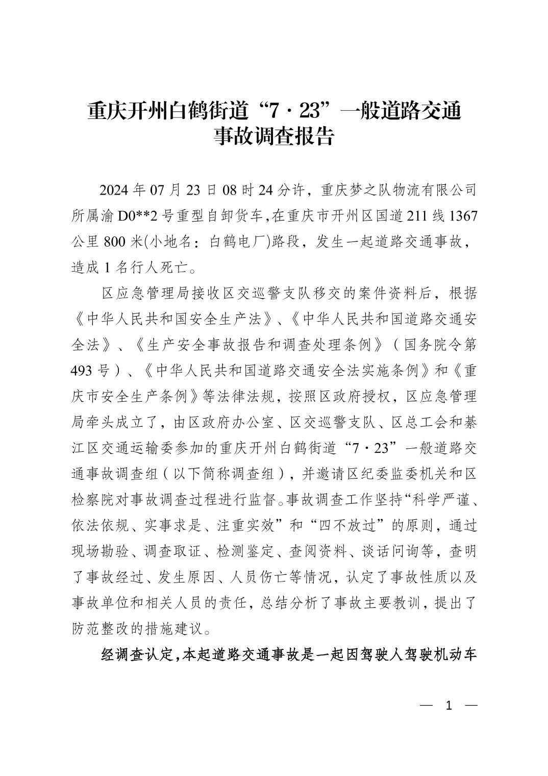 重庆开州白鹤街道“7.23”一般道路交通事故调查报告