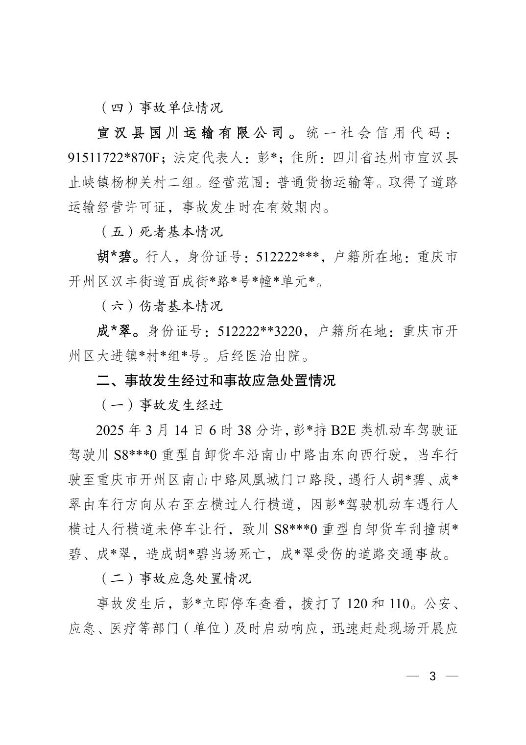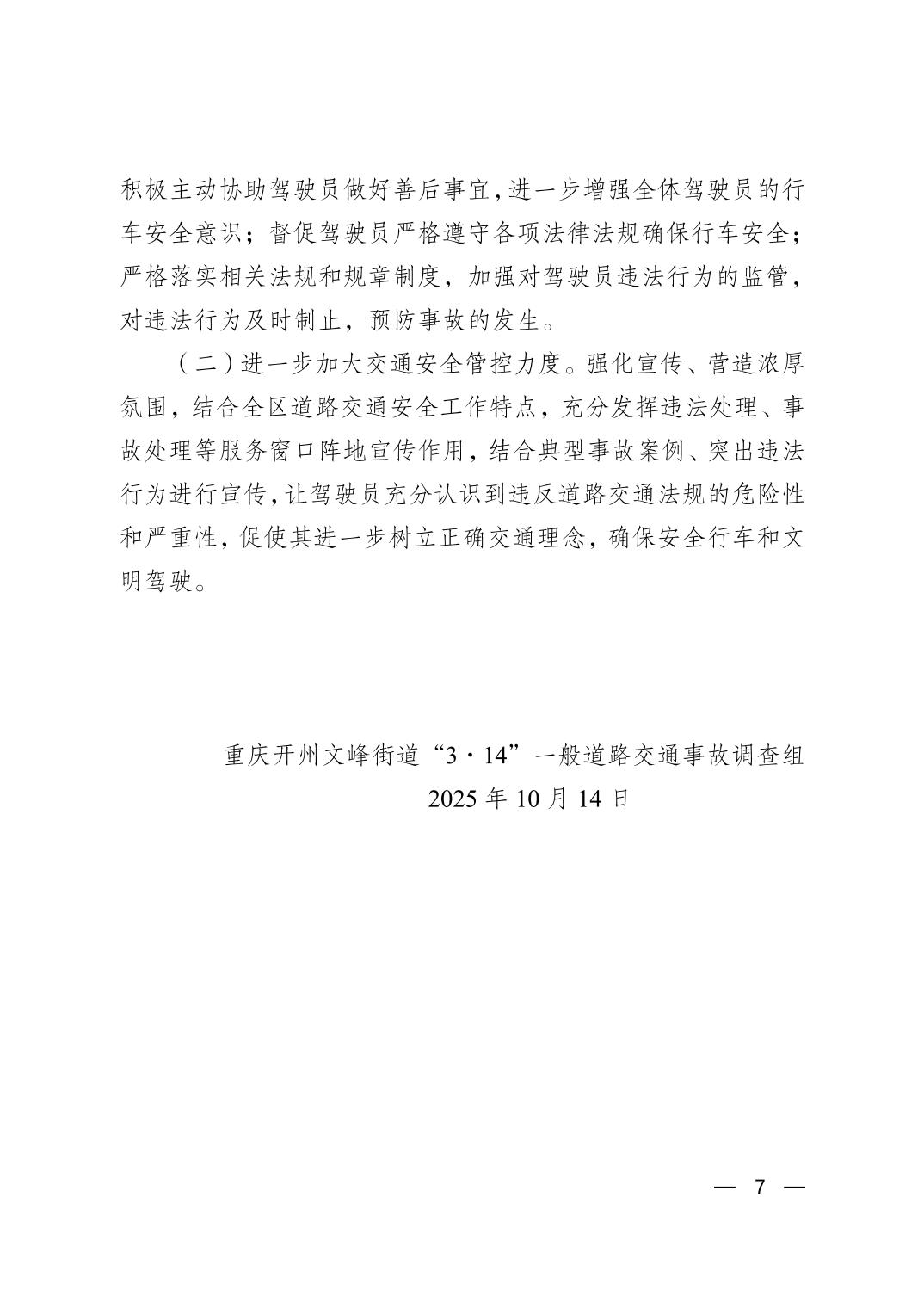 重庆开州文峰街道“3.14”一般道路交通事故调查报告