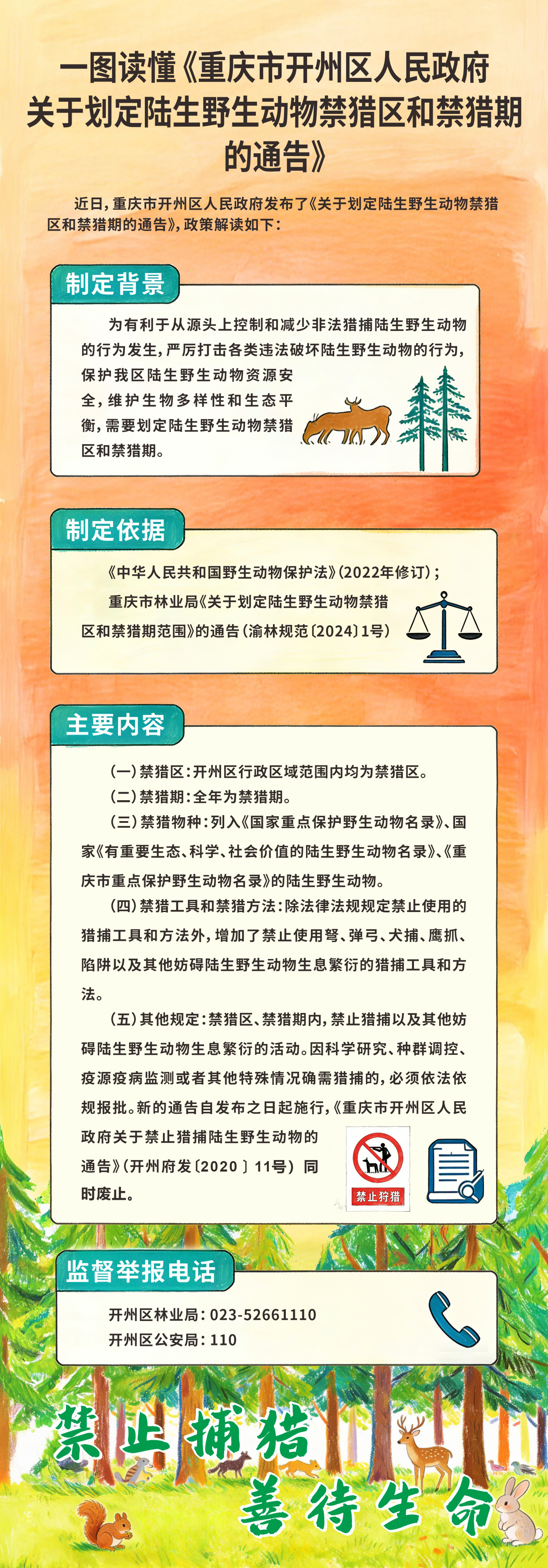 《重庆市开州区人民政府关于划定陆生野生动物禁猎区和禁猎期的通告》图片解读