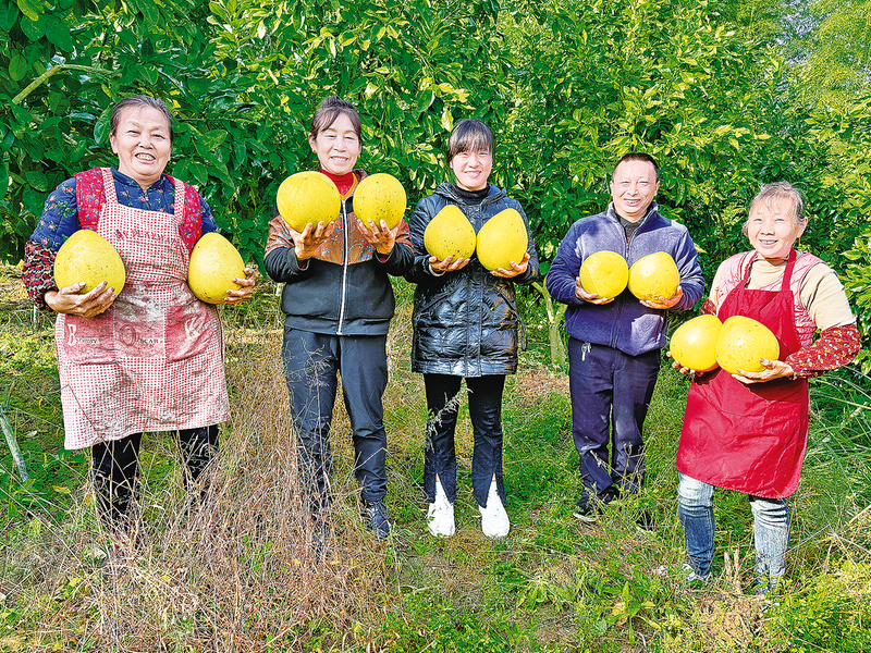 近日,高桥镇大坪村1000亩红心柚迎来丰收季。果园里,金黄饱满的柚子缀满枝头,清香四溢。果农们穿梭于林间,有序采摘、分拣、打包,好一派丰收景象。