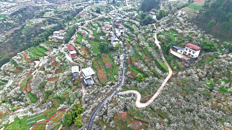 渠口镇5000亩李花如雪覆山,新修的3公里观光步道、50余个停车位及观景平台,让游客从“打卡观光”升级为“深度体验”。当地还创新“李花+柑橘”套种模式,通过开放果园采摘、设立农产品直销点等方式,实现人气与财气双丰收。