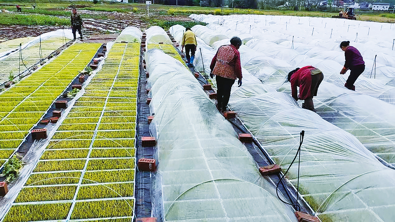 村民育秧。