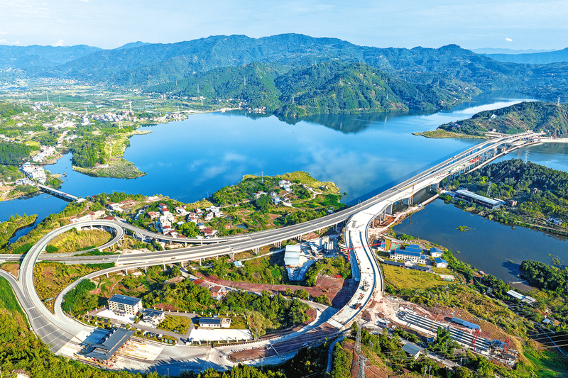 10月21日,城开高速公路在绿水青山间蜿蜒向前,与蓝天、村庄交相辉映,勾勒出一幅壮美的乡村交通画卷。