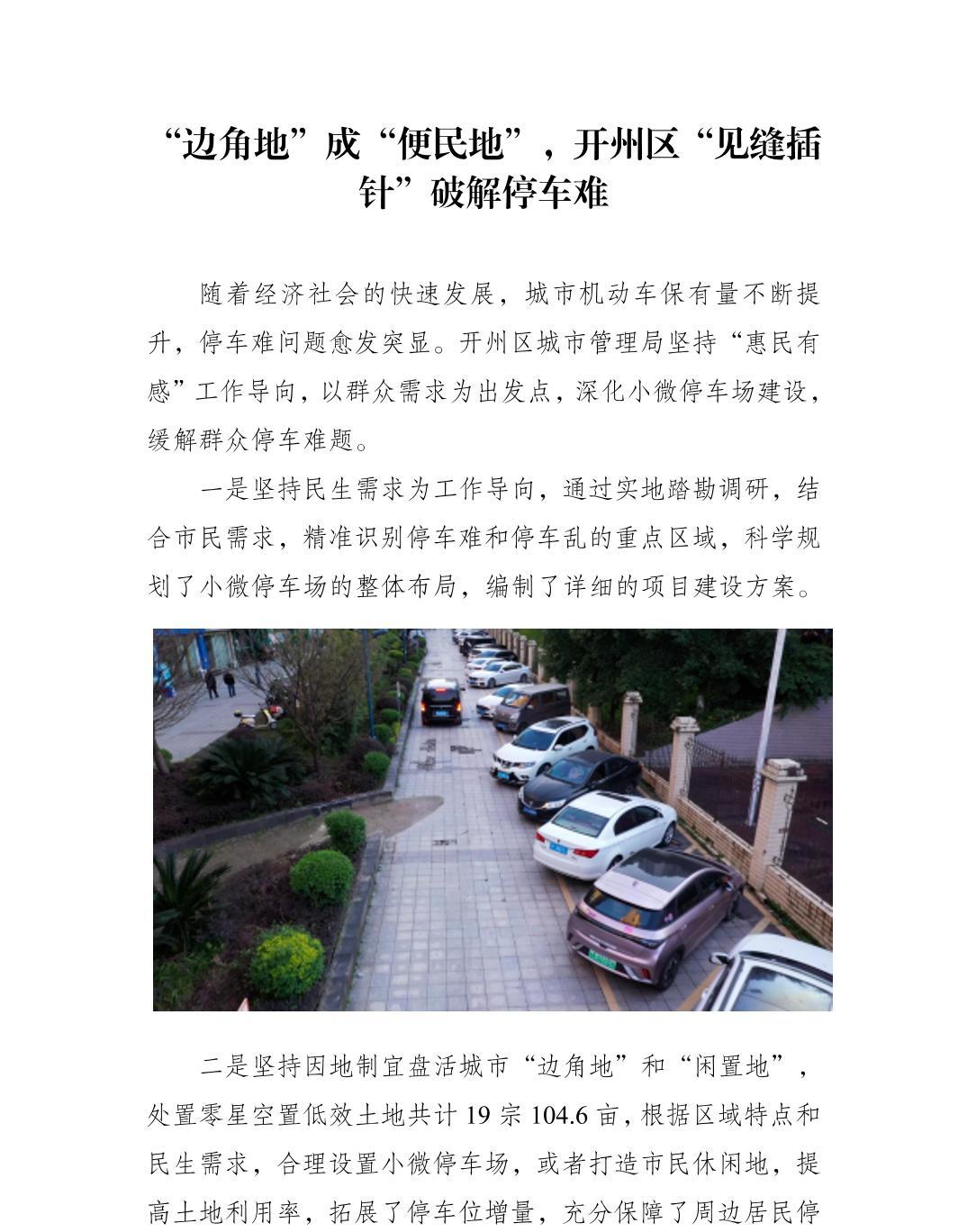 边角地”成“便民地”,开州区“见缝插针”破解停车难
