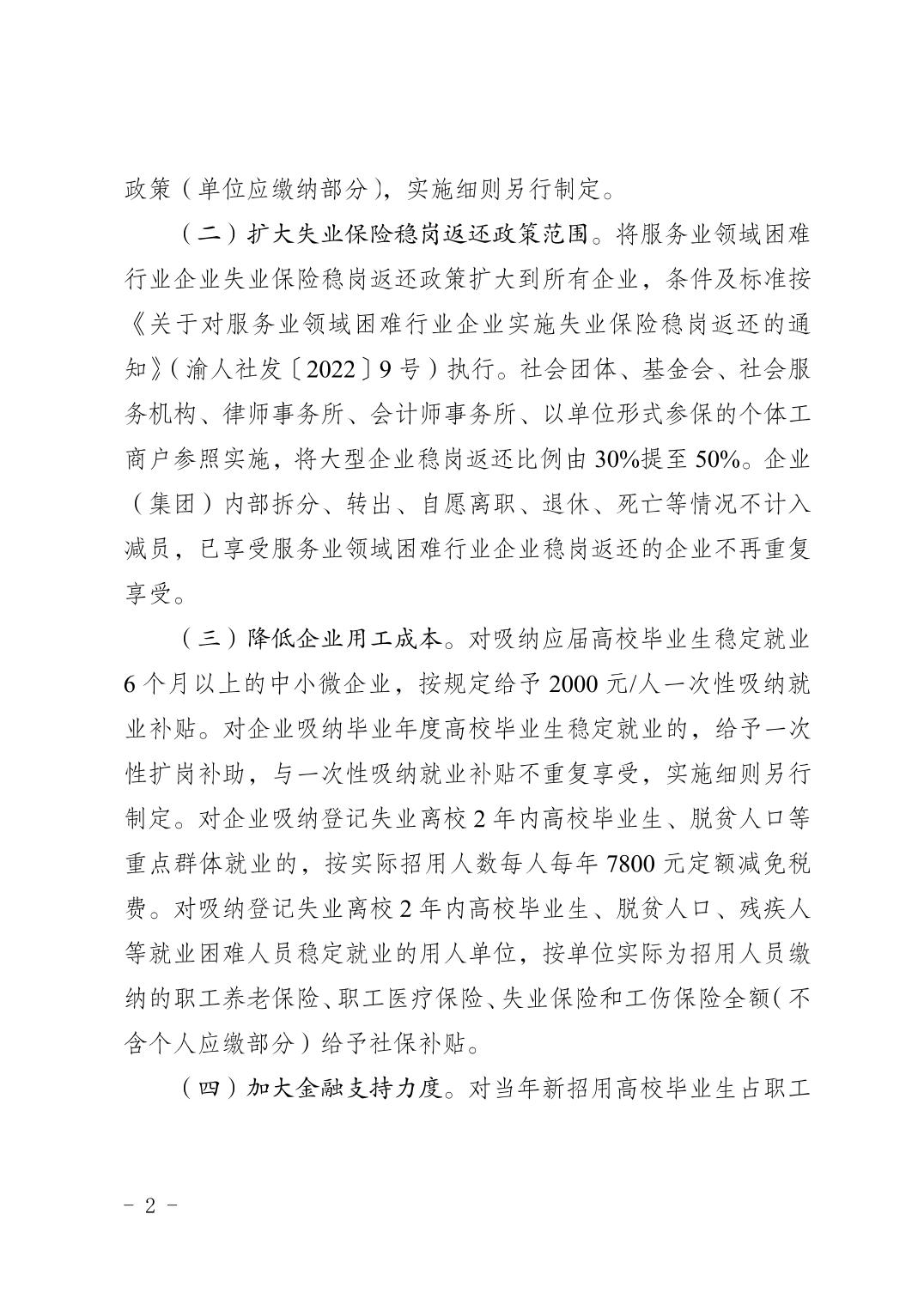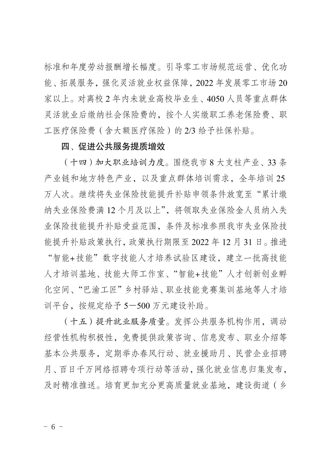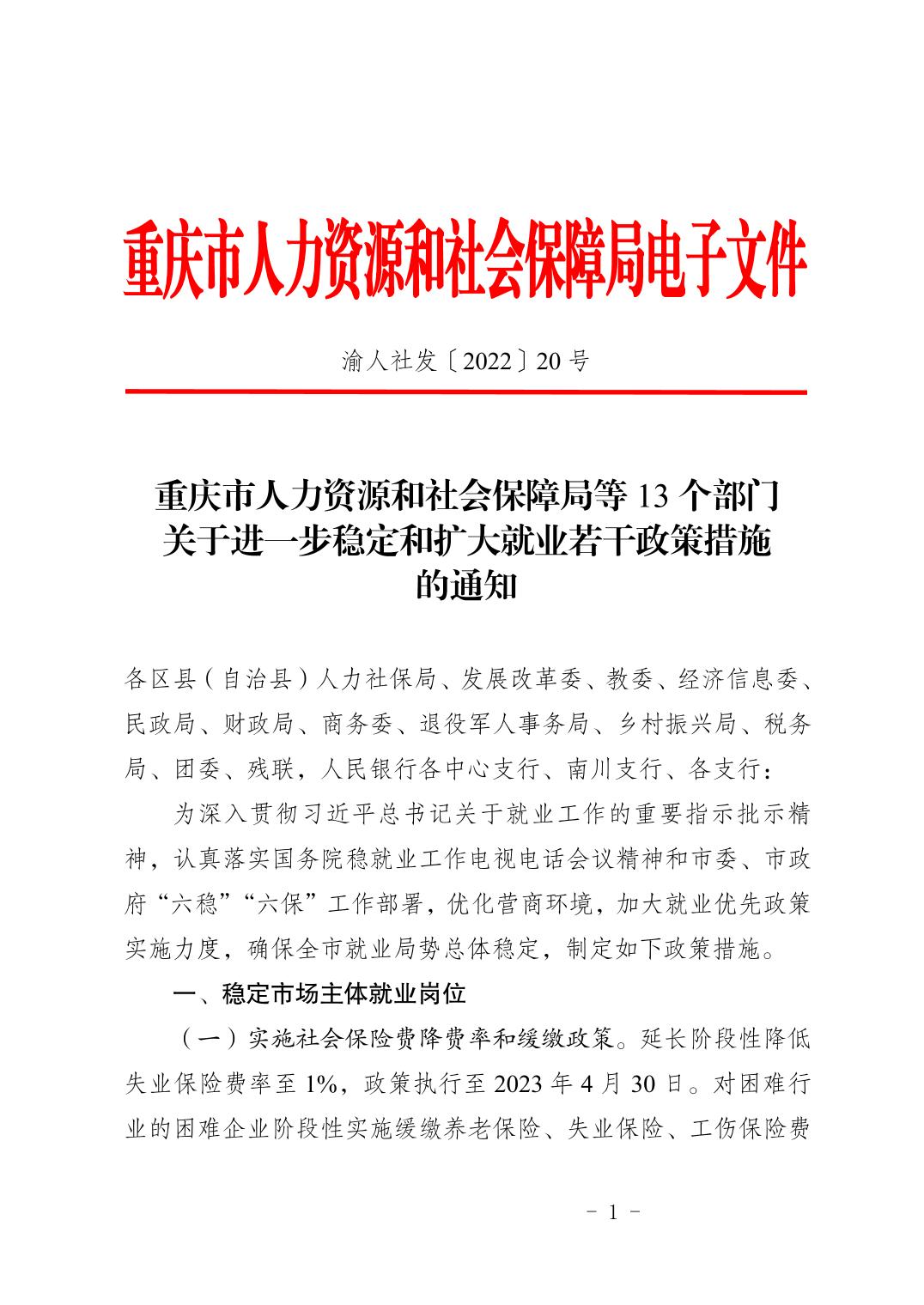 重庆市人力资源和社会保障局等13个部门关于进一步稳定和扩大就业若干政策措施的通知