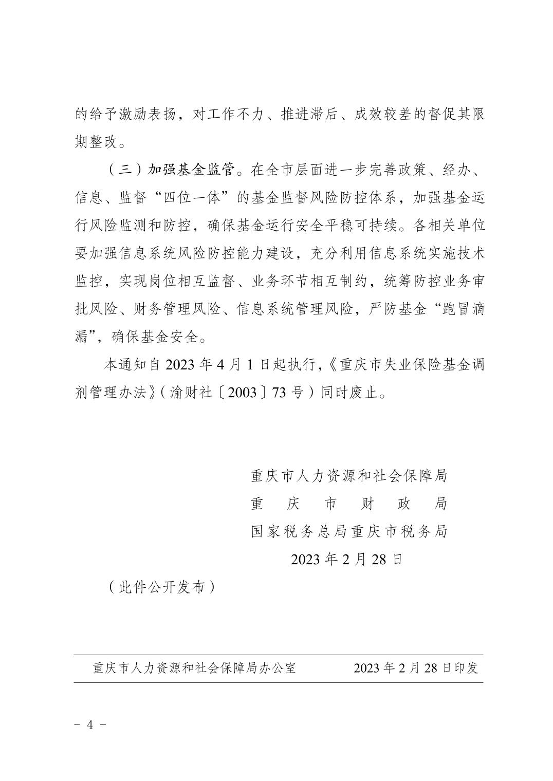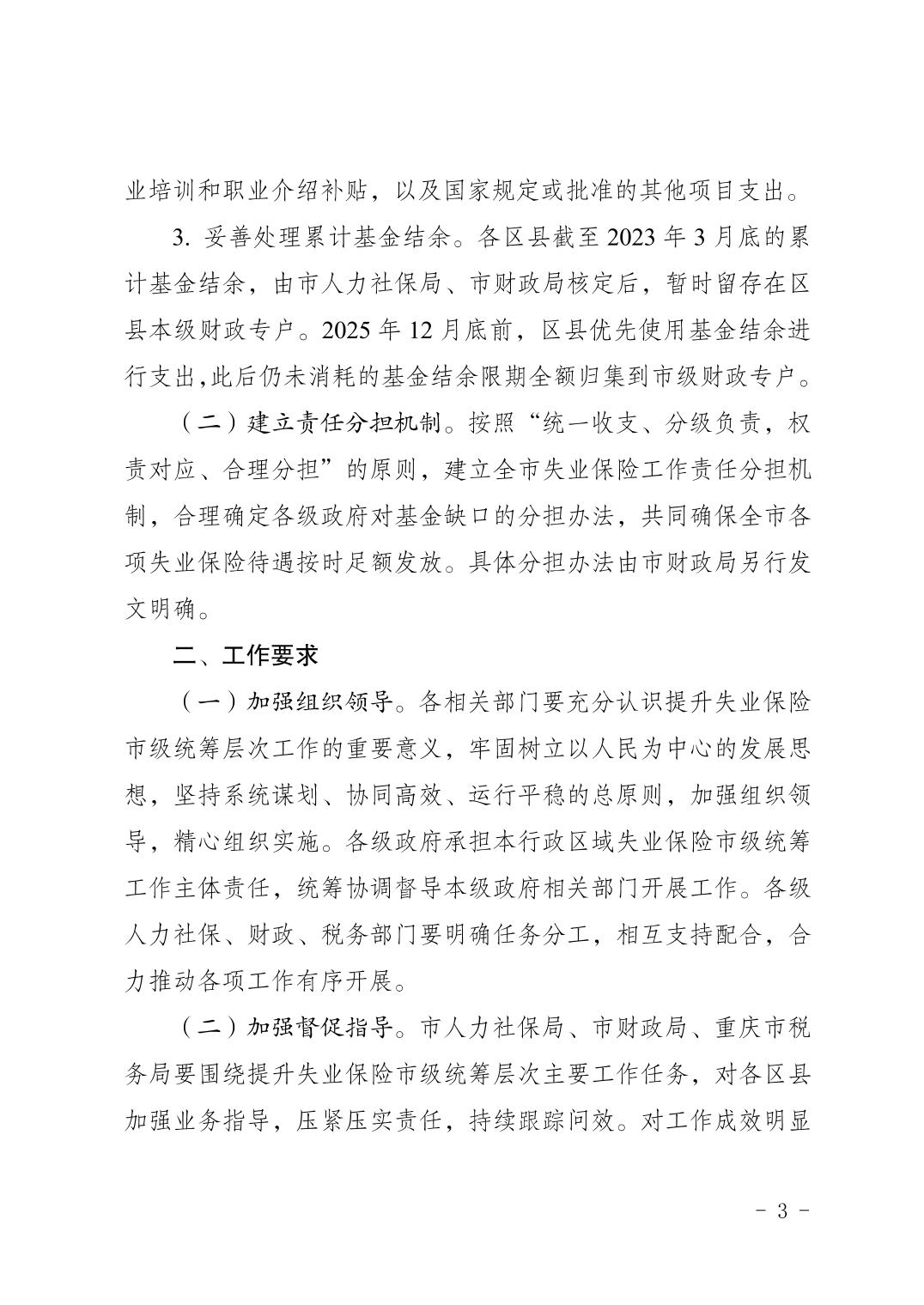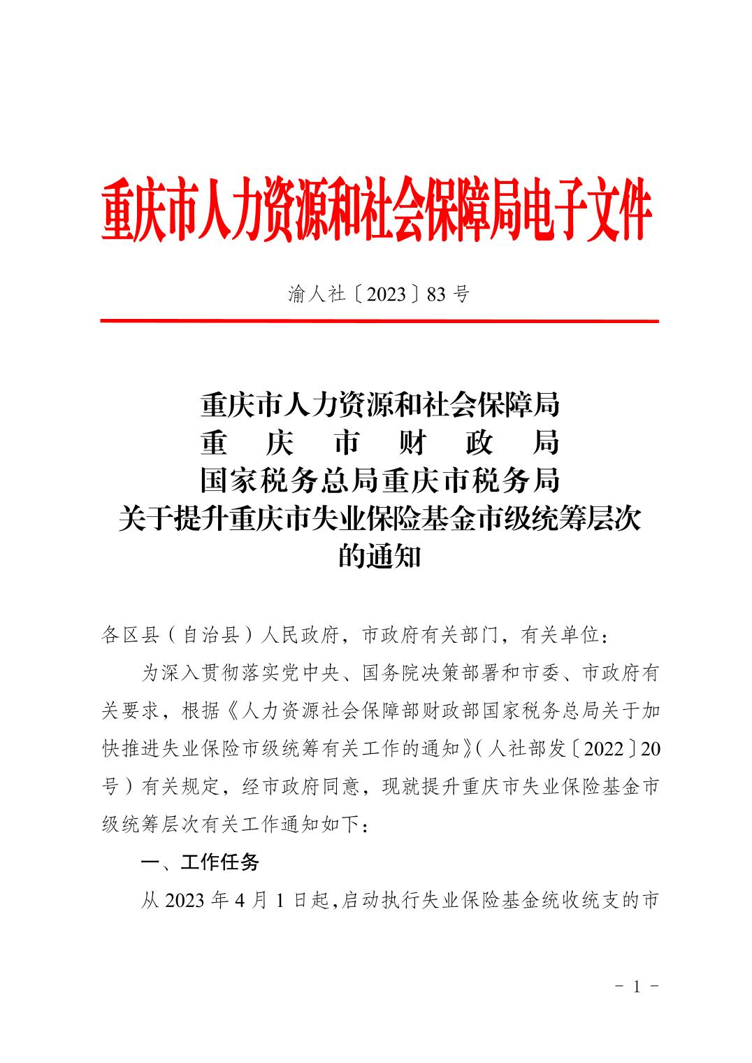 重庆市人力资源和社会保障局重庆市财政局国家税务总局重庆市税务局关于提升重庆市失业保险基金市级统筹层次的通知