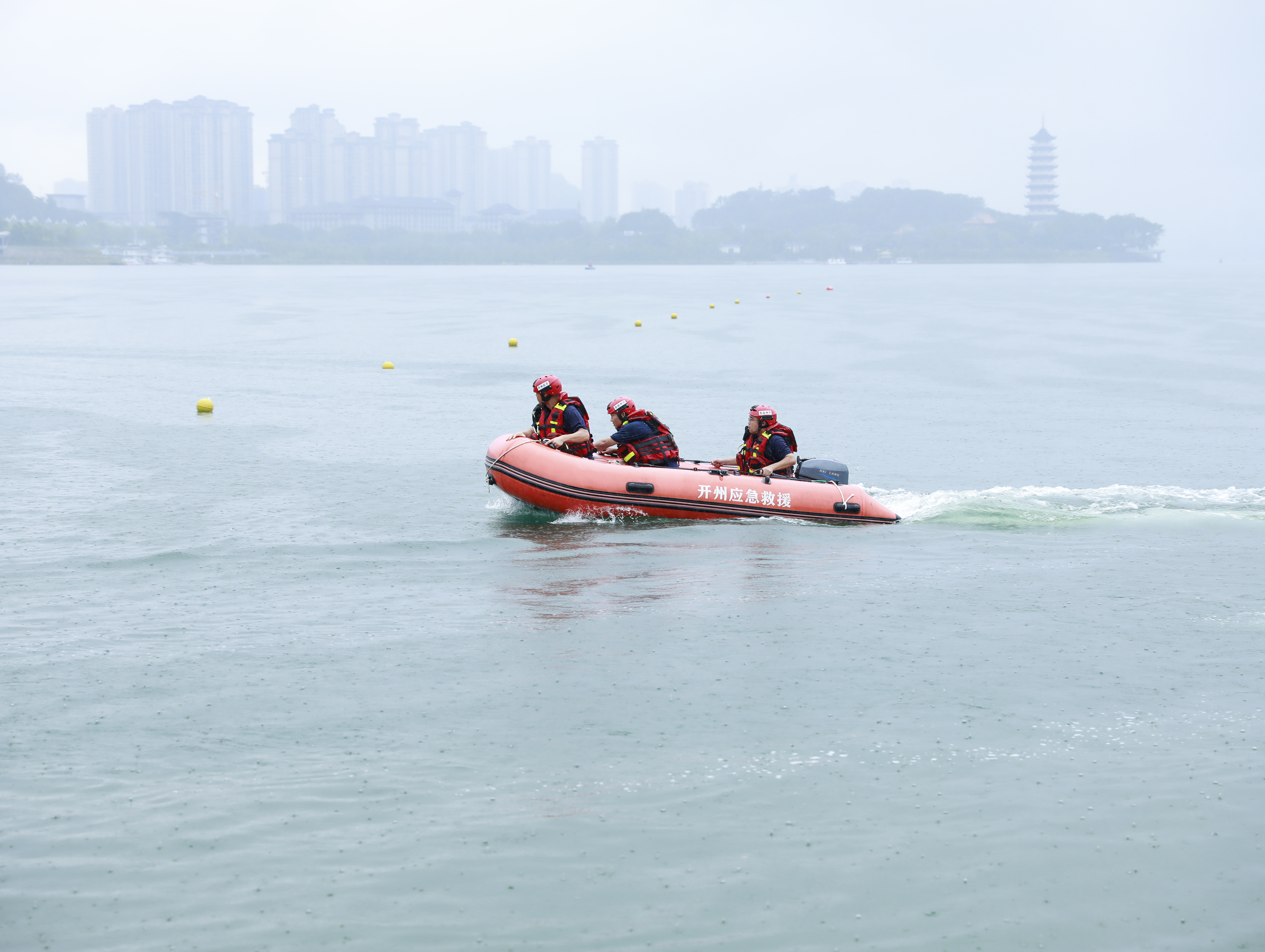 为扎实做好2025年汛期水上应急救援准备工作,提升队伍应对洪涝灾害和水上突发事件的实战能力,5月22日,开州区应急救援中心汛前水上应急救援综合演训在汉丰湖调节坝东侧宽阔水域(避让航道)正式拉开帷幕。