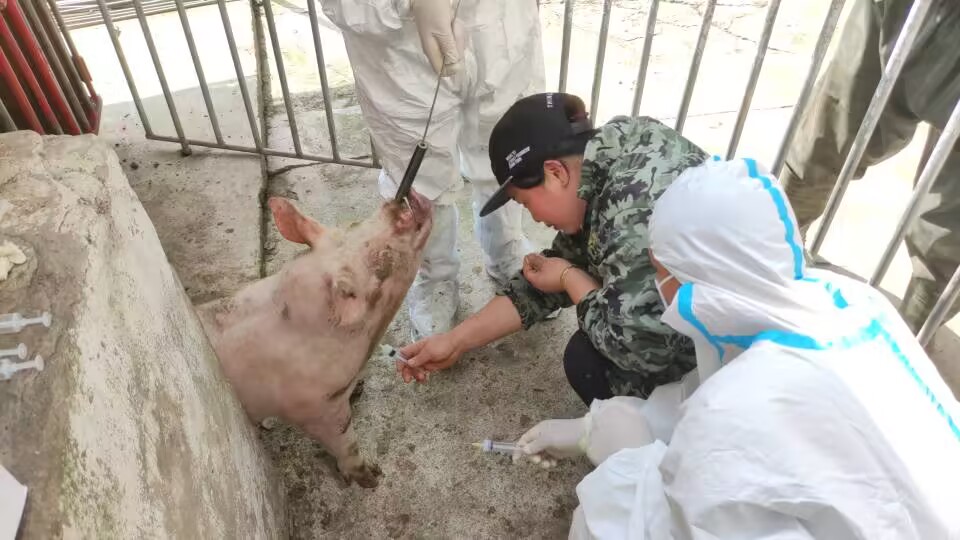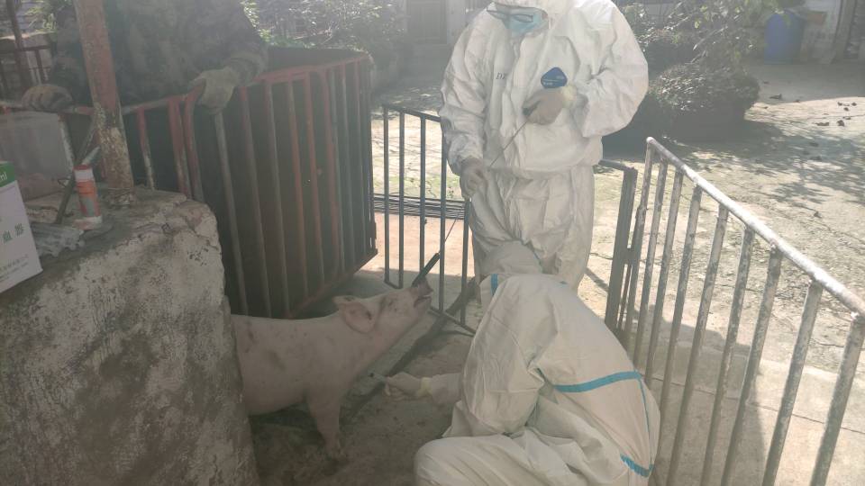 开州区疫控中心工作人员猪前腔静脉采血