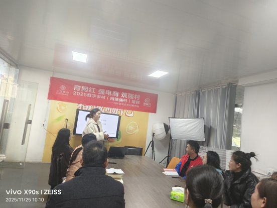 为扎实推进数字乡村建设,以数字化驱动乡村振兴,2025年11月25日,区农业农村委在长沙镇福城村组织开展了以“育网红、强电商、筑强村”为主题的数字乡村(网络强村)培训。本次培训聚焦实战与应用,创新采用“AI工具实战培训”与“实地采风演练”相结合的模式。课程内容紧扣学员实际需求,系统涵盖了账号运营、脚本创作、拍摄手法、剪辑技巧及直播带货话术等核心技能。专业讲师深入田间地头,进行手把手教学,指导学员将理论转化为实践。通过系统的学习与深入的交流,参训学员切实掌握了运用AI工具进行新媒体创作的技能,对未来账号运营有了更清晰的规划,并对“电商+特色农业”的融合发展模式有了新的思考与探索。