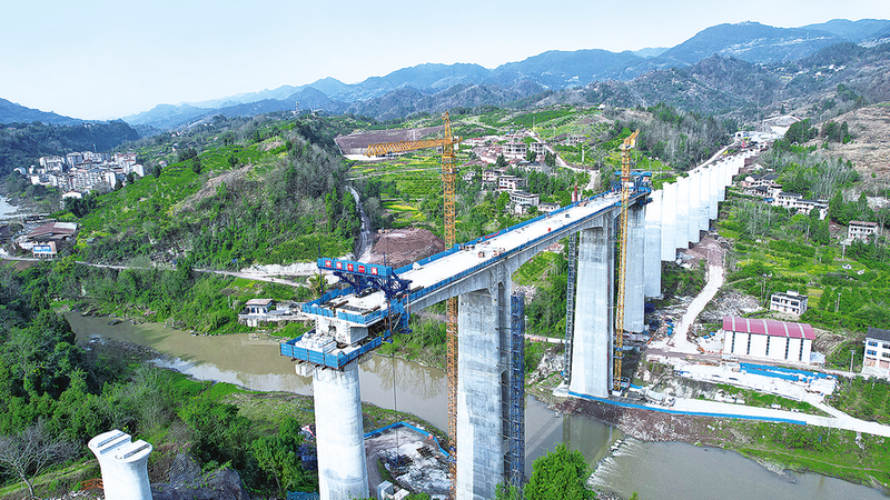 成达万高铁普里河特大桥建设现场。(受访单位供图)