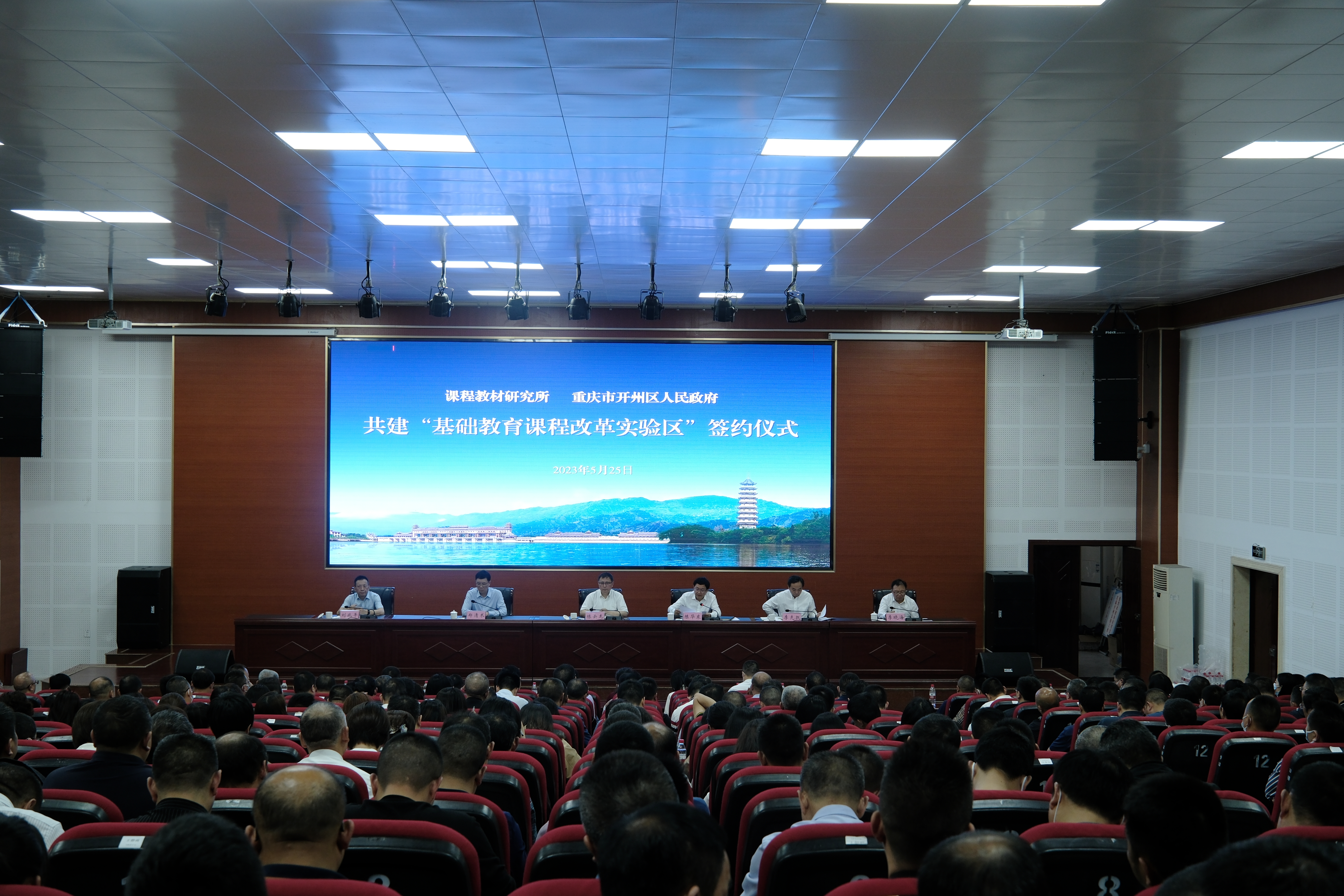 5月25日,教育部课程教材研究所与开州区共建“基础教育课程改革实验区”签约仪式在开州中学举行。课程教材研究所副所长陈云龙、课程改革实验研究中心干部王艳芳,区委副书记陈华东、区人大常委会副主任郑清术、区政府副区长李先凯、区政协副主席刘兆平,区委教育工委、区教委班子成员,区教委机关科室及直属事业单位负责人,区教师进修校中层及以上干部,各片区教管中心主要负责人,各公办中小学、幼儿园书记、校园长及教师代表参加签约仪式。