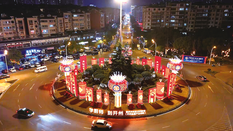 据了解,本次迎春灯饰展示期从1月23日持续至3月4日,覆盖迎宾街交通环岛、石龙船交通环岛等8个重点交通节点,以及开州大道、滨湖路等5条主干道,总长度约13公里,全方位为城市披上“节日盛装”。