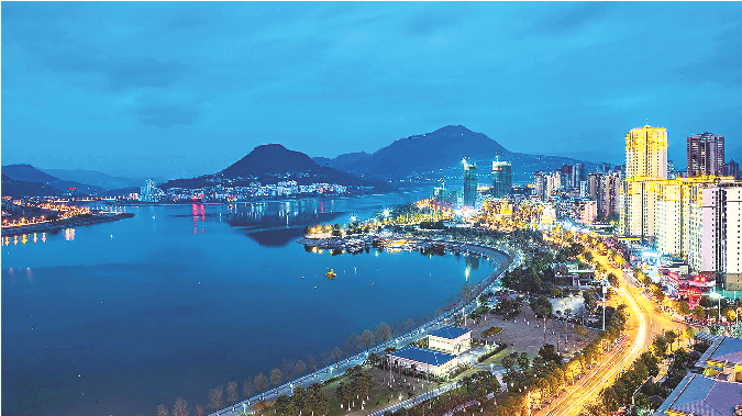 图为汉丰湖畔璀璨夜景