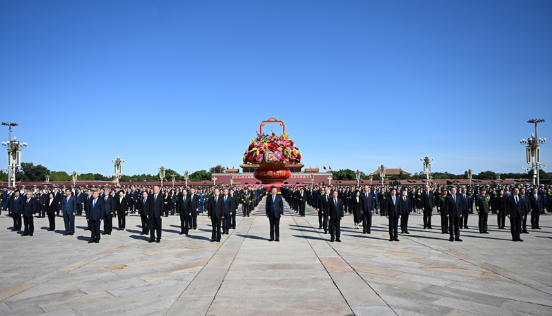 新华社北京9月30日电 鲜花献英烈,浩气壮山河。烈士纪念日向人民英雄敬献花篮仪式30日上午在北京天安门广场隆重举行。党和国家领导人习近平、李强、赵乐际、王沪宁、蔡奇、丁薛祥、李希、韩正等,同各界代表一起出席仪式。