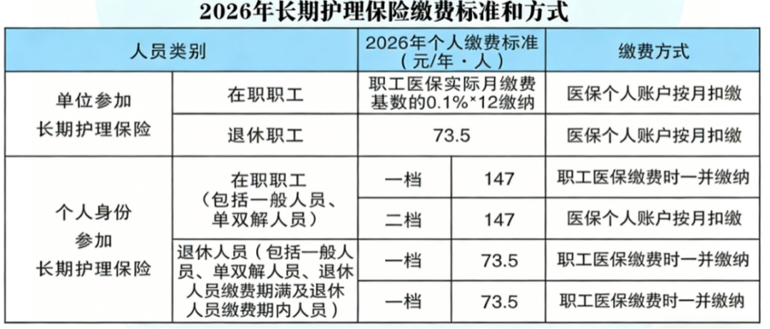 二、长期护理保险参保缴费标准是多少?缴费方式有哪些?